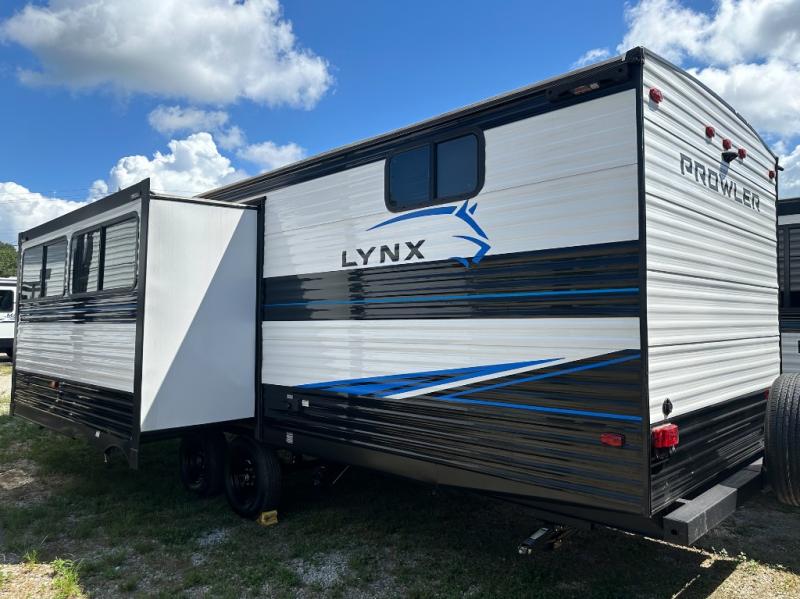 Get ready for comfortable and easy camping with the Prowler Lynx travel trailers by Heartland. These models feature a performastructure aluminum front wall, which is a hybrid construction with a welded aluminum front cage for maximum aerodynamics and durability. You will love the extra large windows for great outdoor views and an A/C unit to keep you cool during the hot summer camping months. Each model also includes innovative storage spaces that will help you keep camp gear and personal belongings clean and neat! Don't let the Prowler Lynx travel trailers slip away. Choose your favorite floorplan today!