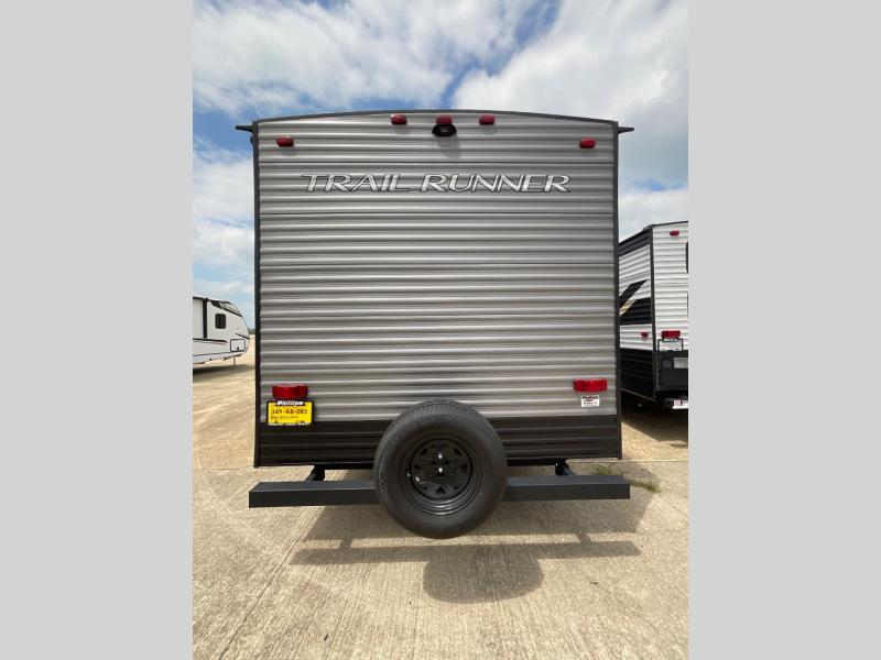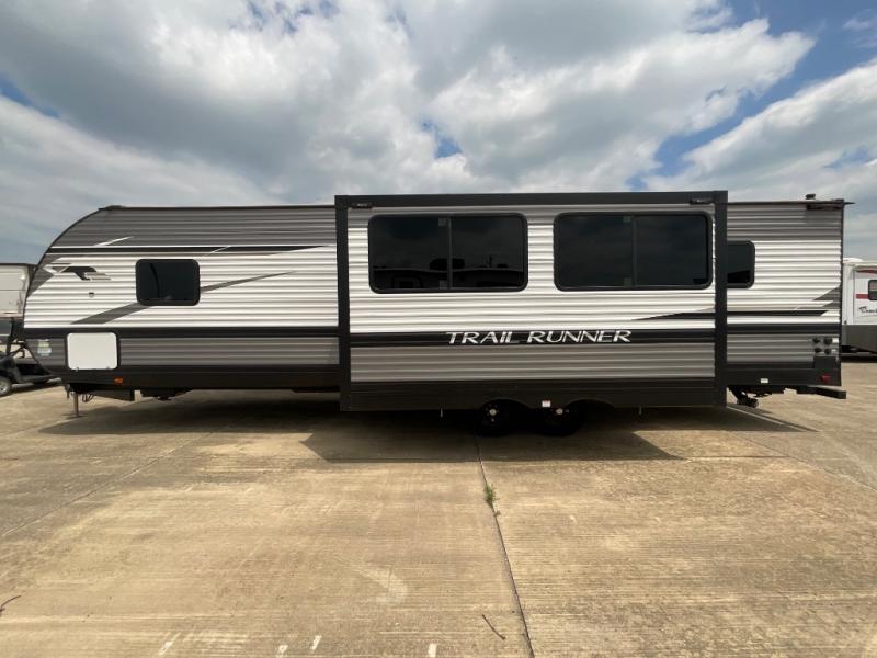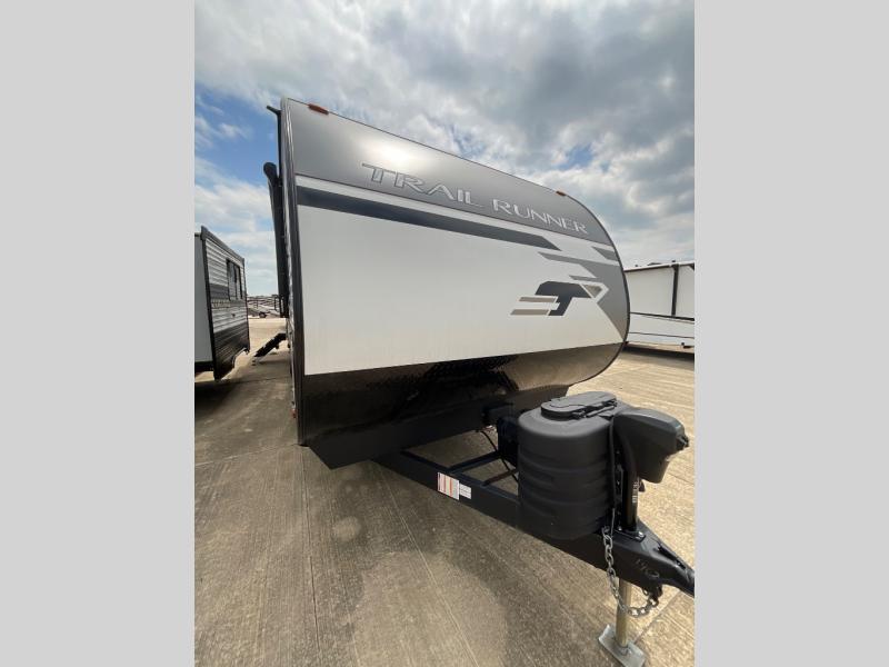 Paradise awaits at the end of the trail with one of these Heartland Trail Runner travel trailers! Experience better wind and water deflection, added strength, and a reduction of tongue weight with the hybrid aluminum front profile that has an aerodynamic radius front cage. A cambered structural steel I-beam frame holds them together and a heated enclosed underbelly protects the units vitals. There is an industry leading mammoth storage space of 57 cu. ft. pass-through storage so you can bring all of your outdoor gear with you. Roller shades in the main living area, woven flooring in all slide rooms, master suites with CPAP storage, and upgraded pressed counters give you the at-home feel you desire. Come find the perfect model for you today!