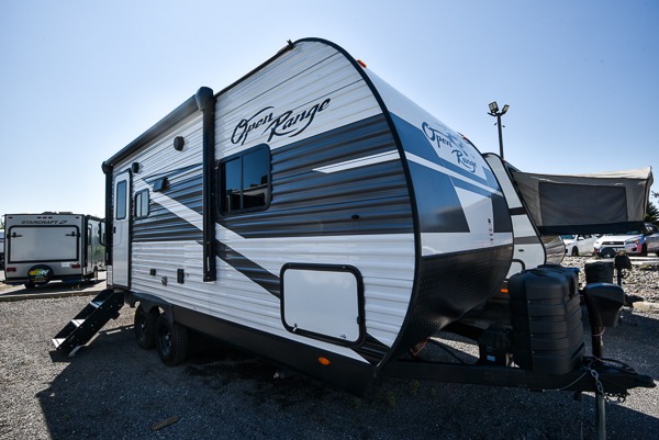 The affordable Open Range Conventional travel trailers by Highland Ridge are ready to meet your camping needs! You will appreciate the durable Magnum Roof system, plus each model is constructed with black front diamond plate protection, 5/8" main floor decking, and self-adjusting electric brakes with E-Z Lube axles for smooth towing. The 81" interior height means you won't feel cramped when relaxing with friends and family, and the residential vinyl flooring throughout is easy to clean, which will be perfect if you're camping with little ones or pets. These models also include an AM/FM/Bluetooth radio with indoor/outdoor speakers, a digital TV antenna that will go perfectly with the optional Smart TV, plus a 13,500 BTU roof mounted A/C to keep you cool on those hot summer months.