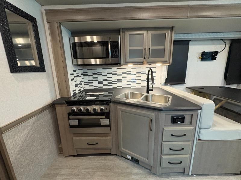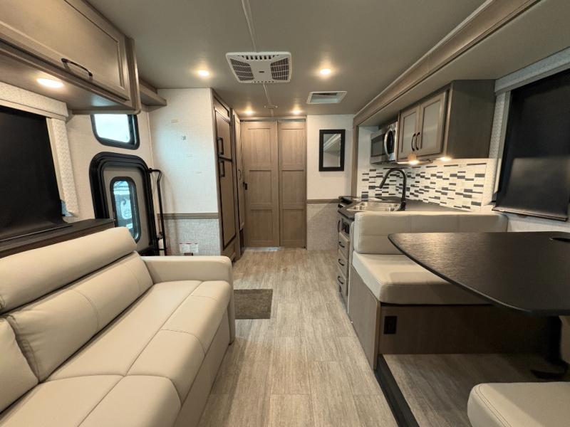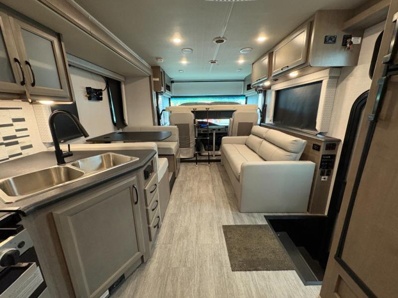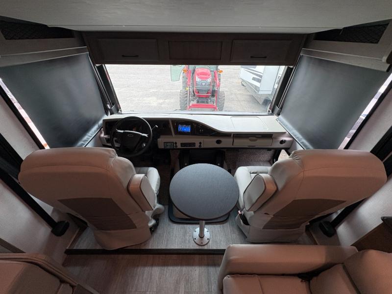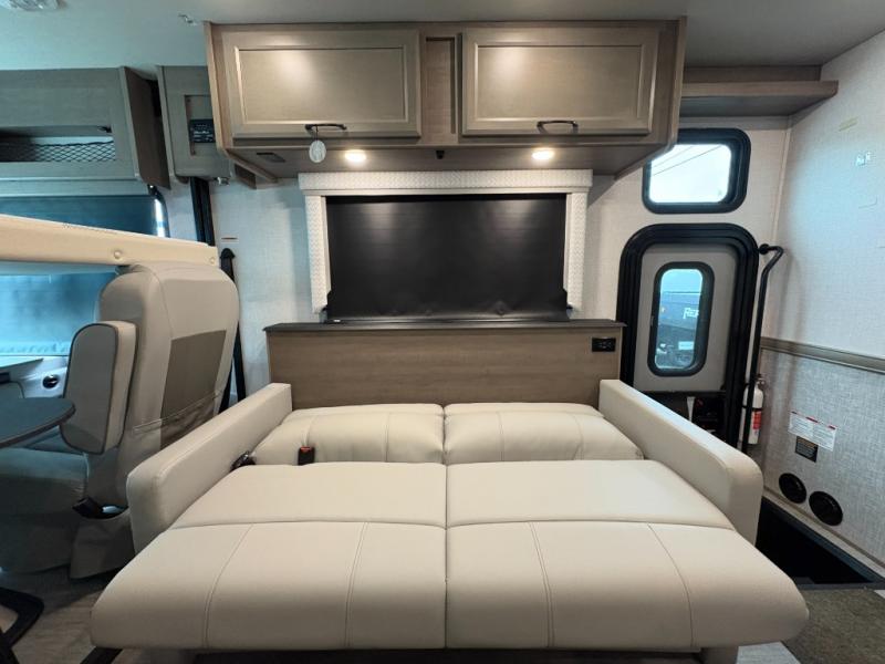 Enjoy a home on wheels with this motorhome! It features a rear corner private bedroom with a Serenity Series 72" x 74" king bed slide to lay your head at night and an LED TV for a comfortable movie night. The jackknife sofa offers a comfortable place to sleep once converted and the Hide-A-Loft drop down electric bed is another comfortable place to two others to sleep. You can even convert the Dream Dinette when you're not using it to enjoy a meal or play a card game. Everyone can freshen up in the rear corner bathroom with the 34" x 22" shower with a skylight above for natural lighting. A few cab conveniences that will make your traveling go smoother include an automotive style dash with work station, electronic cruise control, and a Sony stereo with AM/FM/Bluetooth and a backup camera screen!