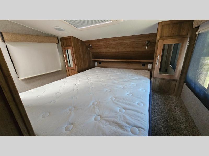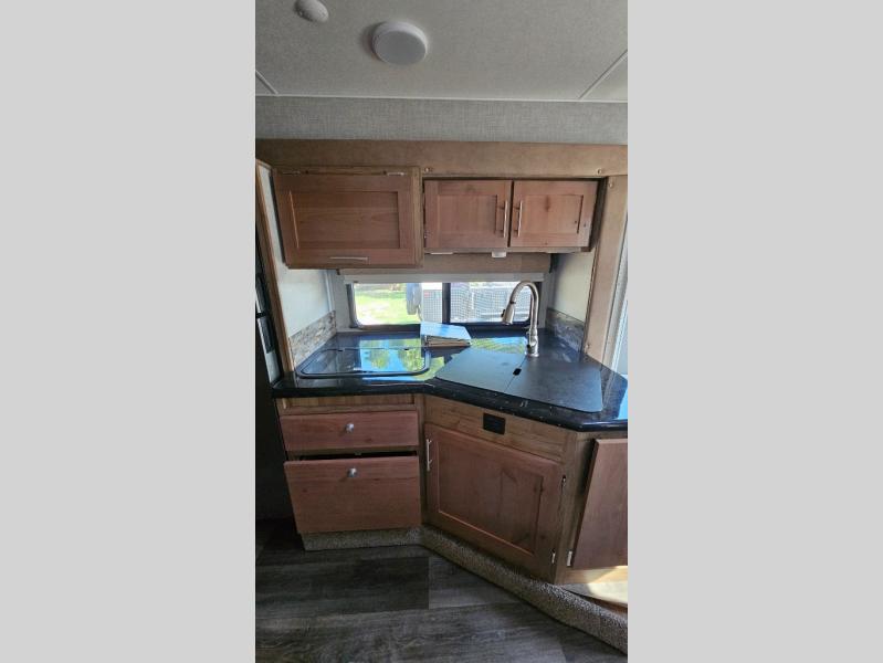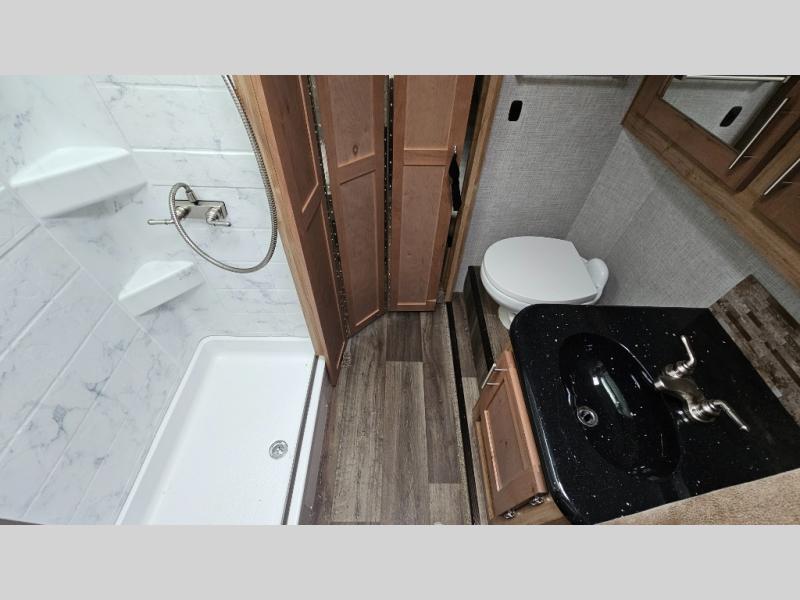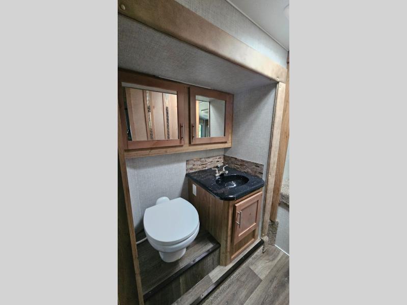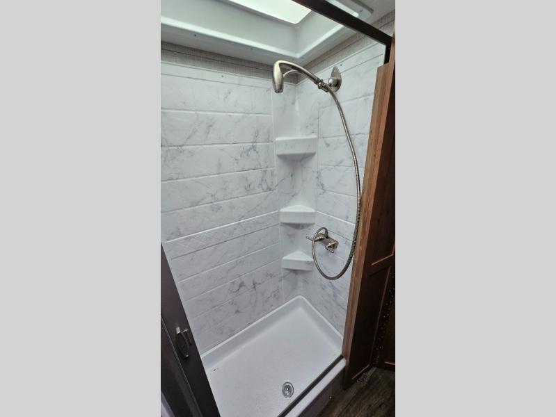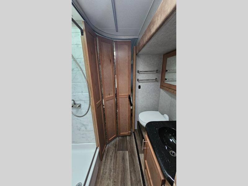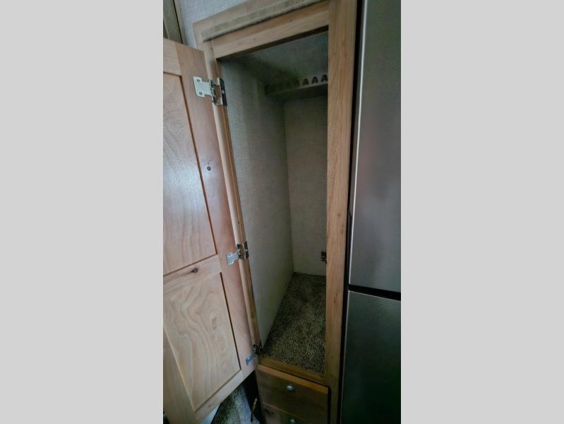 Luxury, convenience and outdoor adventure are just inside and around the corner in this truck camper! There is a queen bed or king option, dual wardrobes and dual entrances into the bedroom, and a second wardrobe for your clothes. You can dine, play games and work at the U-shaped dinette, plus relax on the sofa slide while watching your favorite shows on the flat screen TV above a fireplace for a cozy evening. The full bathroom will keep you refreshed, the pantry allows you to store lots of goodies, and the triple slides give you the interior space you are looking for.