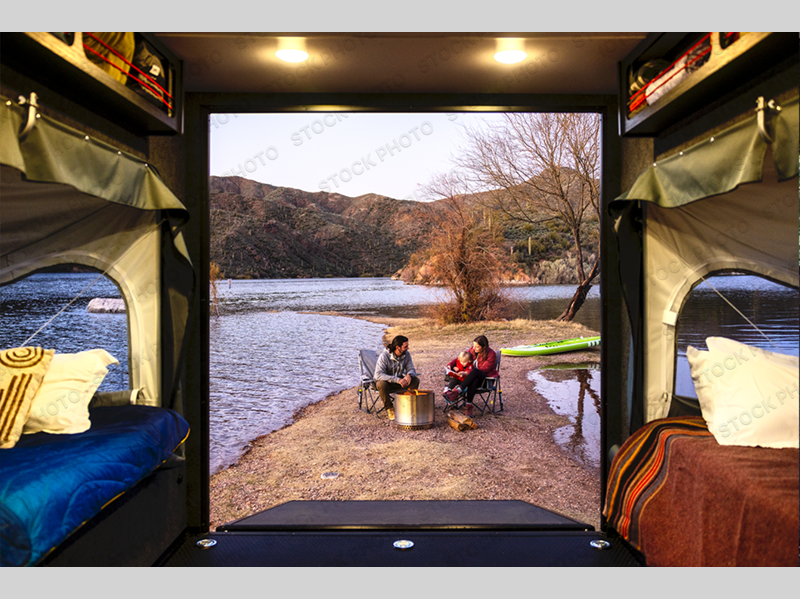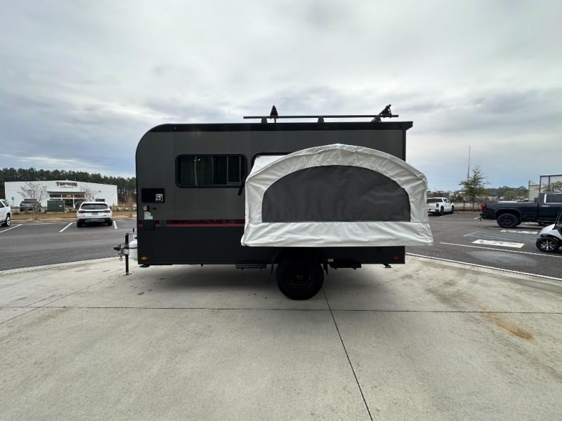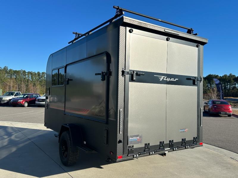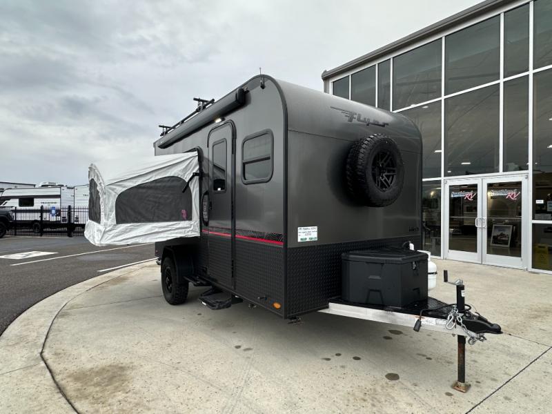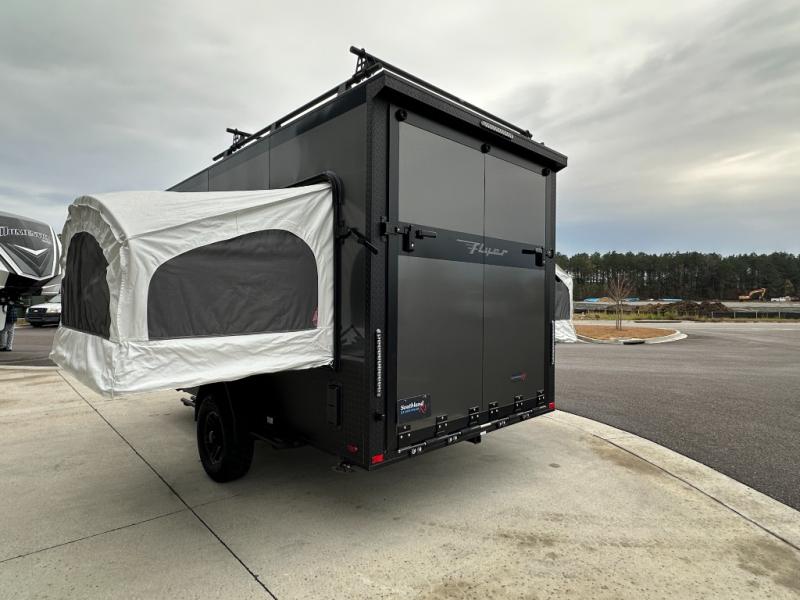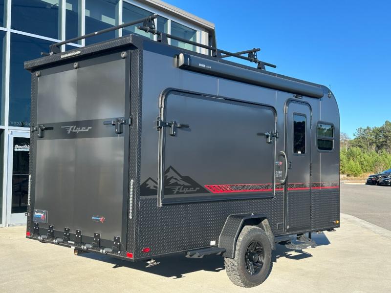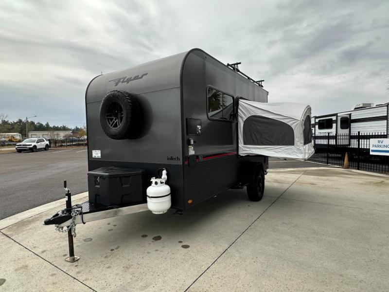 The inTech RV Flyer travel trailers and toy hauler expandables are ready for adventure whenever you are! With the all-aluminum, all-tube cage frame, the Flyer has been built with lightweight and long-lasting materials so that you can enjoy your unit for many, many years. The Flyer has a rugged design so that you can confidently explore new territory and go where traditional RVs cannot. The Flyer has a 2" rear receiver rated for 175 pounds which allows you to bring along your bikes, and the Bluetooth stereo has two speakers you can always have your best music playing. The optional roof rack will allow you to bring along kayaks, and there are more available options depending on the model you choose.