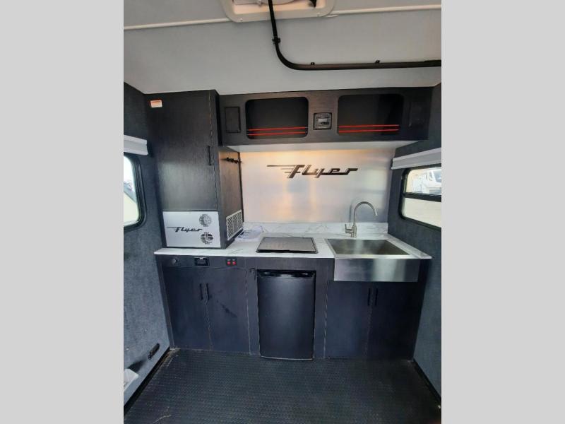 This Flyer expandable toy hauler is perfect for all your outdoor adventure! Not only does this toy hauler provide you with a spacious and versatile interior, but it also gives you a desirable cargo space so that you can bring along some toys for the adventure. This expandable comes standard with two tip-out beds, which adds lots of extra room for sleeping and relaxing. The other feature found on this Flyer that is going to make your trips truly effortless is the front kitchen that comes with a two-burner stainless steel cooktop, a 3.1-cubic foot refrigerator, a large farmhouse sink, and an 8.5-gallon fresh water tank. This expandable toy hauler has a dry weight and net carrying capacity that ranges from 2,440-2,760 LBS.