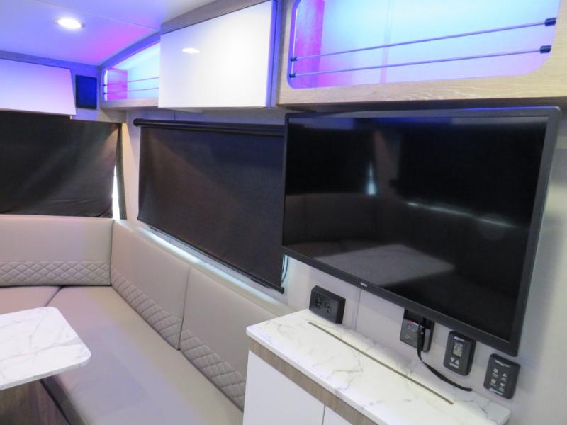 With any Sol travel trailer by inTech RV you will find strong, durable construction consisting of lightweight aluminum that is easier to tow and resists rust, water, and dents. The Tilt-Forward Design creates more space inside so you can stretch out, and the panoramic windshield gives a great view of the mountains, ocean, or forest! The elegant interior features tinted windows with shades, Infinity woven flooring, and a stainless steel cooktop and microwave. You will stay comfortable year around since these models include a 15K BTU A/C and a 16K BTU furnace. You will also love the Rover Package that includes rugged decals, blackout wheels, a 3" lift, a tongue tie down rack, and more rugged features!
