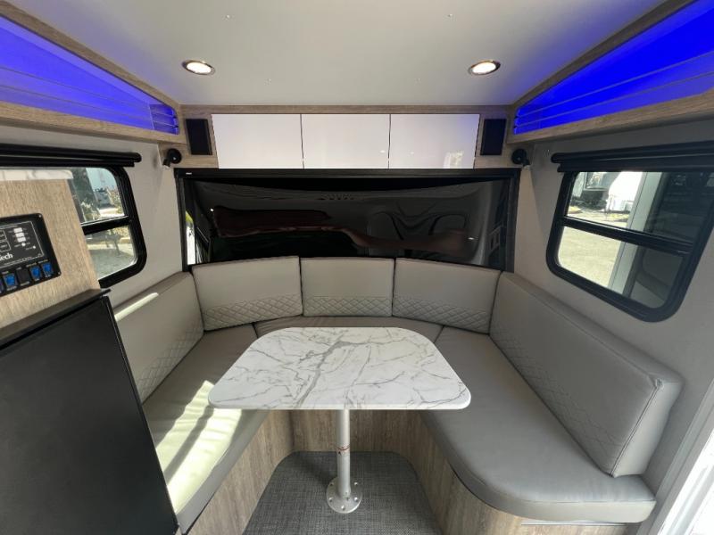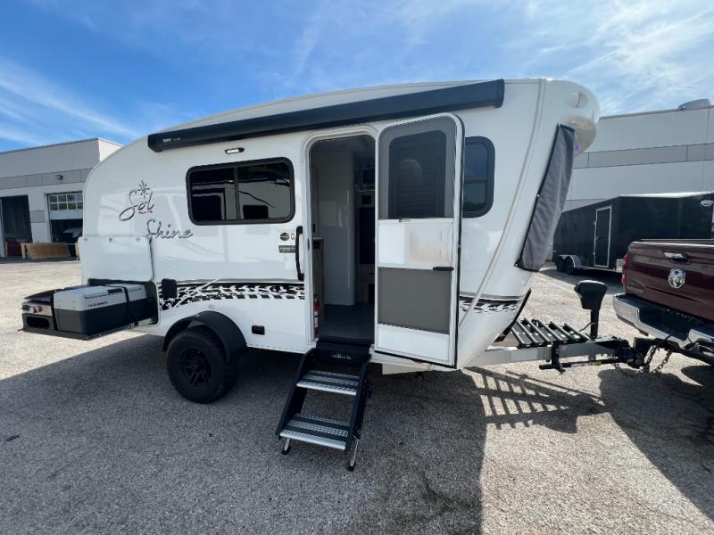 With any Sol travel trailer by inTech RV you will find strong, durable construction consisting of lightweight aluminum that is easier to tow and resists rust, water, and dents. The Tilt-Forward Design creates more space inside so you can stretch out, and the panoramic windshield gives a great view of the mountains, ocean, or forest! The elegant interior features tinted windows with shades, Infinity woven flooring, and a stainless steel cooktop and microwave. You will stay comfortable year around since these models include a 15K BTU A/C and a 16K BTU furnace. You will also love the Rover Package that includes rugged decals, blackout wheels, a 3" lift, a tongue tie down rack, and more rugged features!