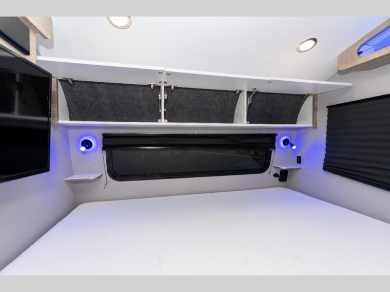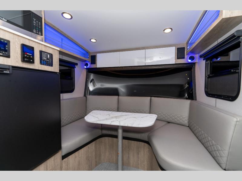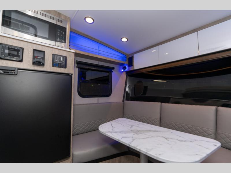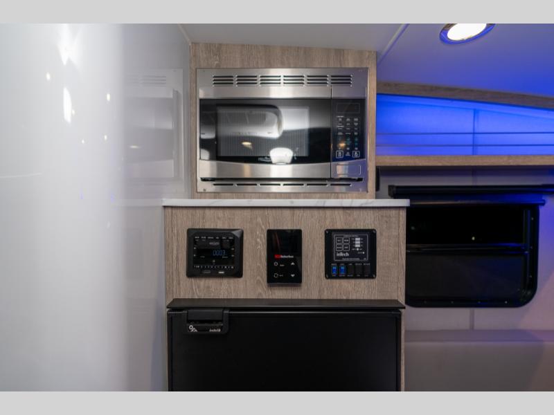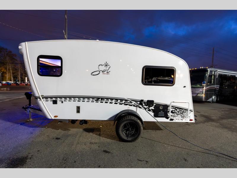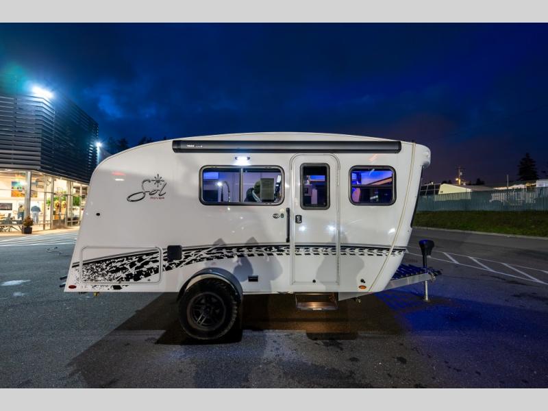With any Sol travel trailer by inTech RV you will find strong, durable construction consisting of lightweight aluminum that is easier to tow and resists rust, water, and dents. The Tilt-Forward Design creates more space inside so you can stretch out, and the panoramic windshield gives a great view of the mountains, ocean, or forest! The elegant interior features tinted windows with shades, Infinity woven flooring, and a stainless steel cooktop and microwave. You will stay comfortable year around since these models include a 15K BTU A/C and a 16K BTU furnace. You will also love the Rover Package that includes rugged decals, blackout wheels, a 3" lift, a tongue tie down rack, and more rugged features!