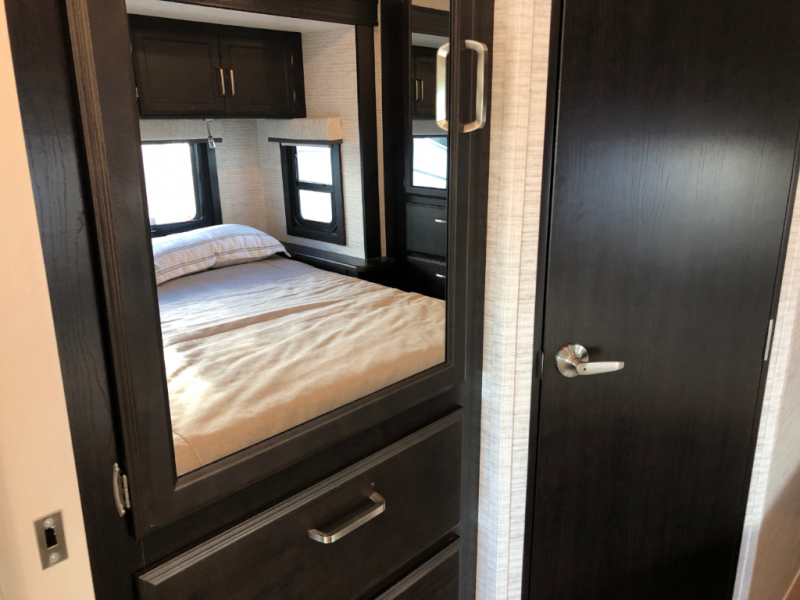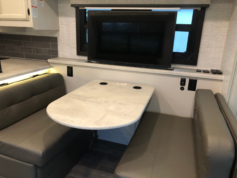 When you enjoy the drive as much as the destination, you know you made the correct choice for your adventures! The driver and passenger seats swivel to create more seating when you are parked, and the Jayco-exclusive, easy operation legless dinette plus jack-knife sofa give everyone a place to relax and visit. You will also find sleeping space for five to six when you utilize the furniture and you choose the drop-down overhead bunk option. The rear corner bedroom gives you a king bed, two wardrobes, and a full bathroom just a few steps away. The kitchen offers full amenities including a countertop extension, and you might like to choose the 15 cu. ft. refrigerator option. Don't forget about the outside entertainment center, and the 39" LED HD Smart TV inside when you want to watch a show, a movie or the big game.