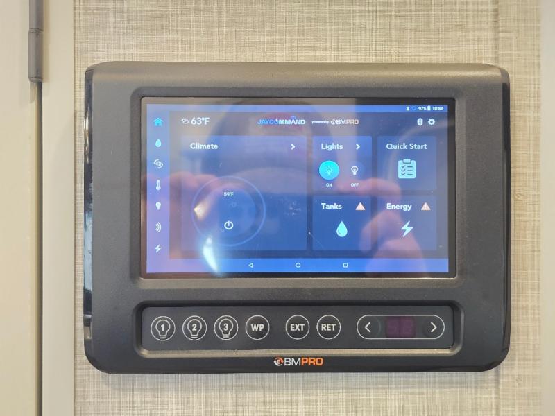 With any Eagle fifth wheel or travel trailer by Jayco you will appreciate durable construction materials, like the Magnum Truss Roof and the Stronghold VBL laminated walls. The JAYCOMMAND Smart RV system puts you in control of your RV's functions, and the 5 Star Handling Package will provide smooth towing from home to camp. Each model features Climate Shield zero-degree tested weather protection and the industry-exclusive HELIX cooling system that features two 15,000 BTU Whisper Quiet A/C's to keep you comfortable year around. Some of the exterior conveniences you are sure to love are the pass-through storage with Slam-Latch baggage doors and an automotive style front cap with max turn radius. The Eagle fifth wheels and travel trailers are designed to make you feel at home with solid hardwood slide fascia, residential vinyl flooring, a bathroom skylight, and plenty of storage for all your belongings.