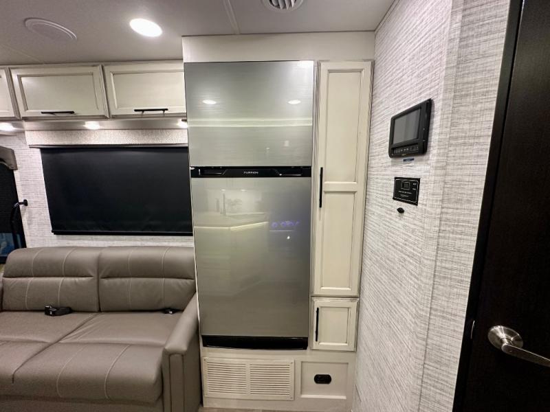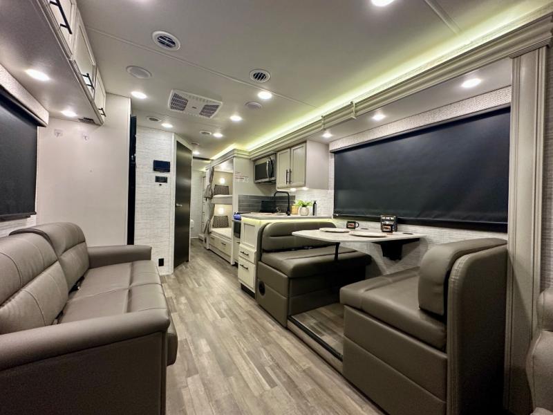 Bunk beds allow you to sleep seven to eight in this motorhome, so grab your friends and head out! The swivel captain's seats can become a part of the living area once you park, and you'll find additional seating on the 68" jackknife sofa and 42" x 70" booth dinette. This model includes an LED HD Smart TV in the living room for movie nights. If you'd rather be outside, the 18' power awning with LED lights will create an inviting space to visit with loved ones. When you've worked up an appetite, prepare a meal on the Furrion all-in-one cooktop and oven, or use the residential-size microwave. This model also includes plenty of storage space, including overhead compartments, a bedroom wardrobe, plus a kitchen pantry for snacks and dry goods!