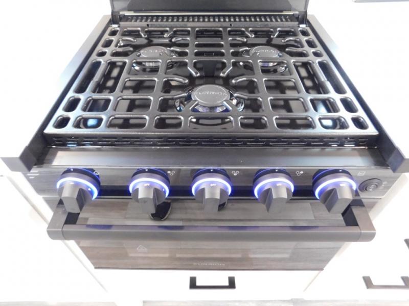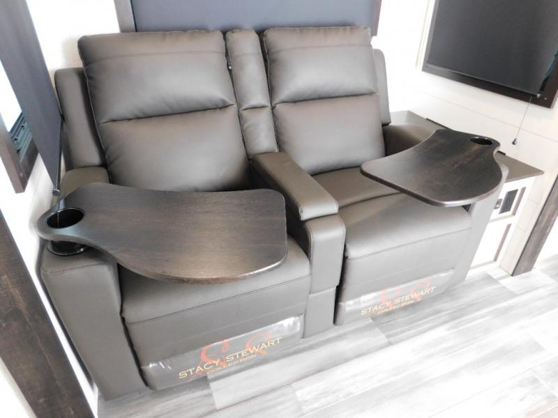 This travel trailer offers a lot of possibilities! During the day, relax in the spacious front living area with a jackknife sofa plus a pair of theater seats, both positioned for a great view of the entertainment center. A fully equipped kitchen with dual sinks, microwave, and three-burner range makes meals easy, and the theater seats have swing-out trays for you to dine. At night, pull down the 60" x 75" Murphy bed for a great night's sleep! wardrobes on either side of the bed provide plenty of storage for your clothing. The rear corner bath is convenient and private, and offers a linen closet plus a medicine cabinet for additional storage capability. Outside you will be sheltered from the sun beneath the 15' awning, and there is an exterior griddle for pancakes in the morning!