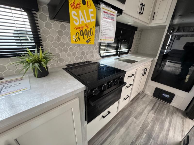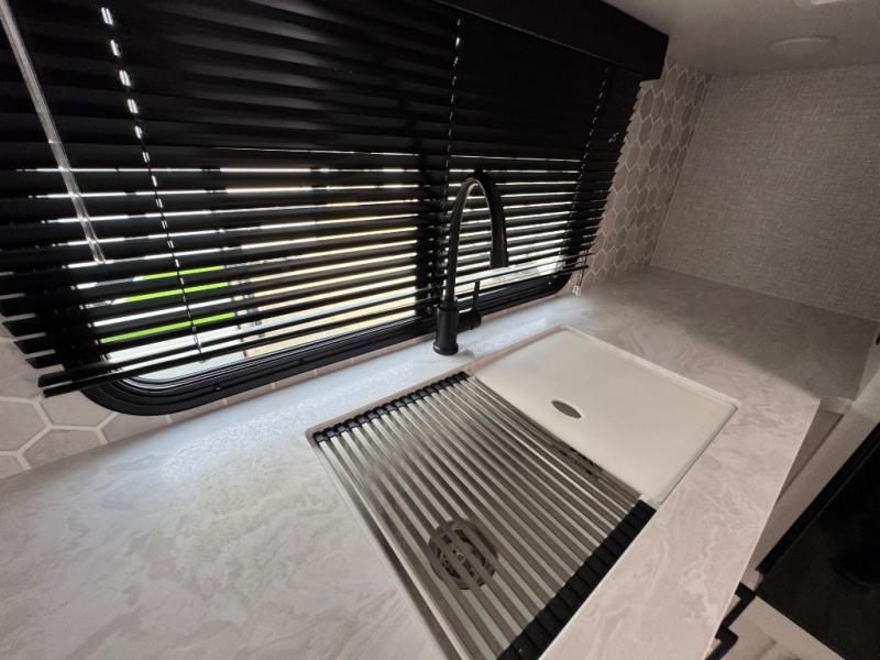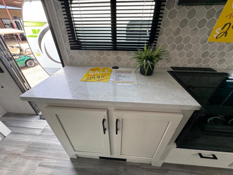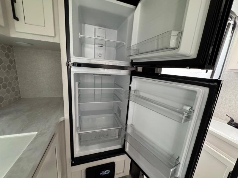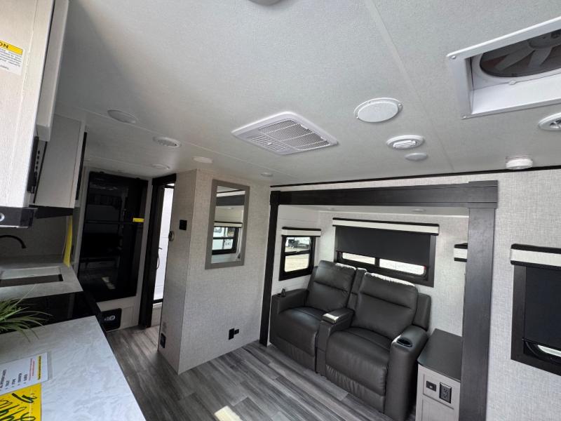 With any Jay Feather travel trailer by Jayco, you will enjoy lightweight towing, convenient exterior amenities, and at-home comforts inside! The Overlander 1 Solar Package included within the Jay Sport Package comes with a 200W solar panel and a 30-amp digital controller so you can enjoy some off-grid camping. There is also a modern graphics package with a dual-colored sidewall, LCI Solid Step fold-down aluminum tread steps on the main entry door, and Climate Shield 0 -100° F tested weather insulation package that will allow you to camp in all sorts of climates. The Customer Value Package will make time outdoors easier than ever with an outside shower, a power tongue jack and a Rock Solid stabilizer system, plus American-made nitro-filled Goodyear tires with self-adjusting electric brakes. More exterior features include a Keyed-Alike locking system, marine grade exterior speakers with blue LED accent lighting, a Magnum Truss roof system, and the list goes on! And we haven't even touched on the interior comforts, like the residential style kitchen countertops and vinyl flooring throughout, decorative backsplash, handcrafted hardwood door/drawer fronts, and multiple USB charging ports to keep you going!