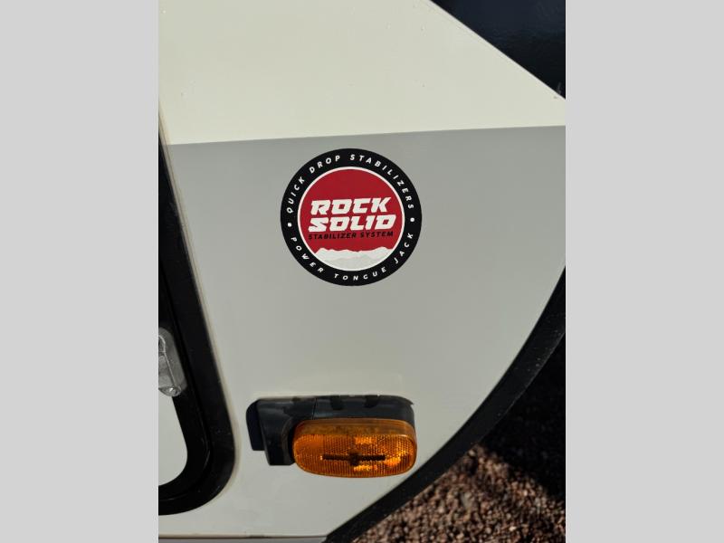 LCI Solid Step fold-down entry steps and Rock Solid stabilizer system for easy setup anywhere