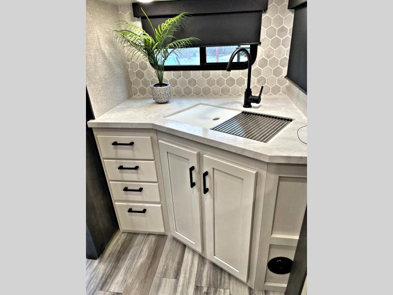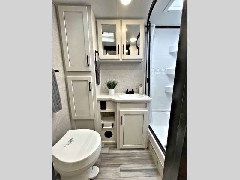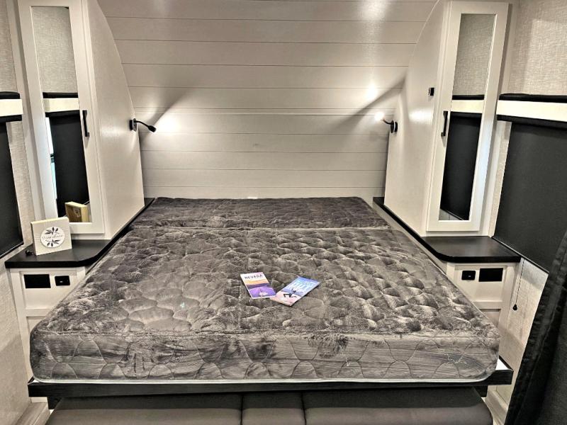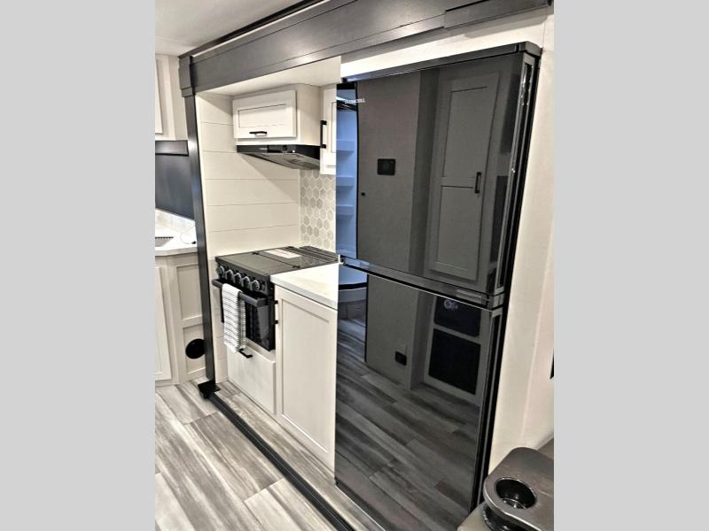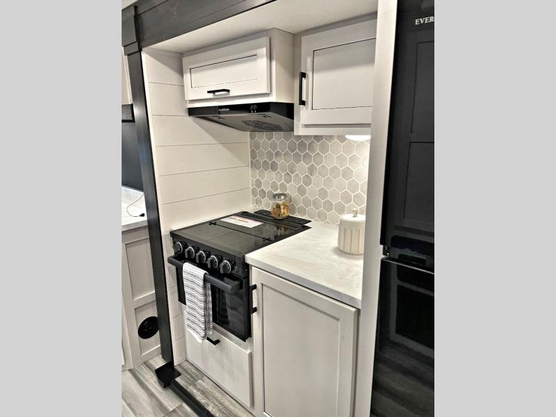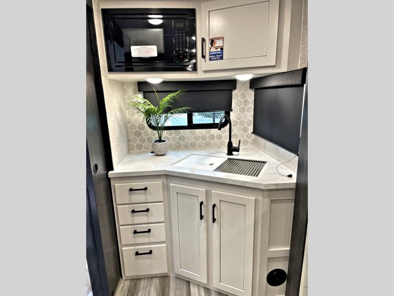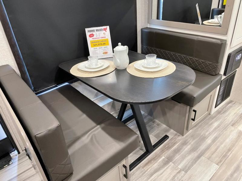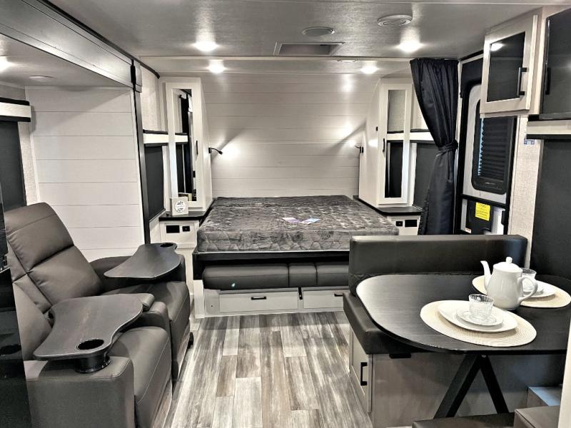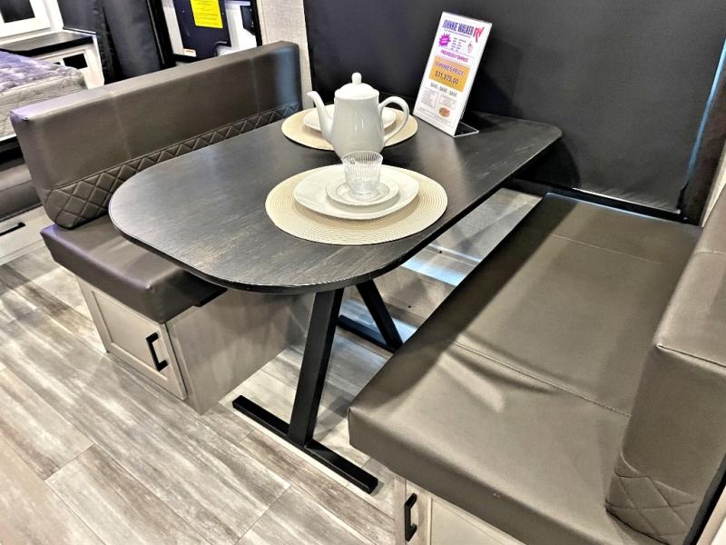 If you wish to escape the hustle and bustle of everyday life then you need this travel trailer! It features a front 60" x 75" Murphy bed with wardrobes on either side for bedtime and a jackknife sofa during the day. You can play games at the booth dinette after enjoying a delicious meal prepared with the three burner cooktop or relax at the theater seating with table trays and enjoy the LED TV. The rear corner bathroom has a tub/shower for you to get cleaned up in, as well as a linen closet to store your towels. There is exterior storage space to keep your outdoor gear, a 15' power awning to protect you from the elements, and an exterior griddle with LP quick connect!