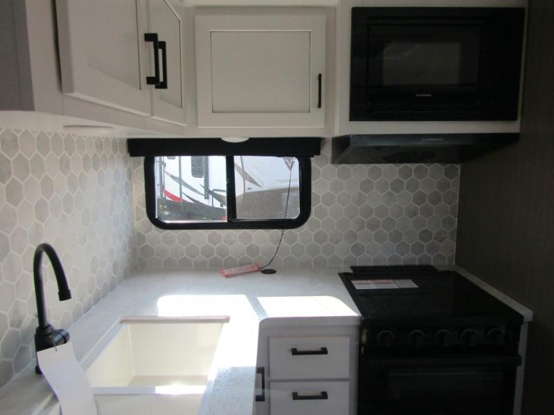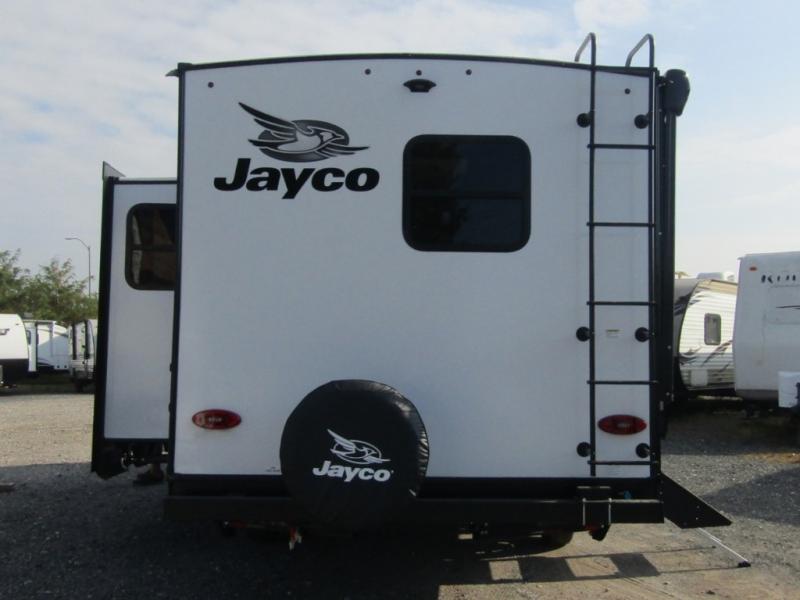 With any Jay Feather travel trailer by Jayco, you will enjoy lightweight towing, convenient exterior amenities, and at-home comforts inside! The Overlander 1 Solar Package included within the Jay Sport Package comes with a 200W solar panel and a 30-amp digital controller so you can enjoy some off-grid camping. There is also a modern graphics package with a dual-colored sidewall, LCI Solid Step fold-down aluminum tread steps on the main entry door, and Climate Shield 0 -100° F tested weather insulation package that will allow you to camp in all sorts of climates. The Customer Value Package will make time outdoors easier than ever with an outside shower, a power tongue jack and a Rock Solid stabilizer system, plus American-made nitro-filled Goodyear tires with self-adjusting electric brakes. More exterior features include a Keyed-Alike locking system, marine grade exterior speakers with blue LED accent lighting, a Magnum Truss roof system, and the list goes on! And we haven't even touched on the interior comforts, like the residential style kitchen countertops and vinyl flooring throughout, decorative backsplash, handcrafted hardwood door/drawer fronts, and multiple USB charging ports to keep you going!