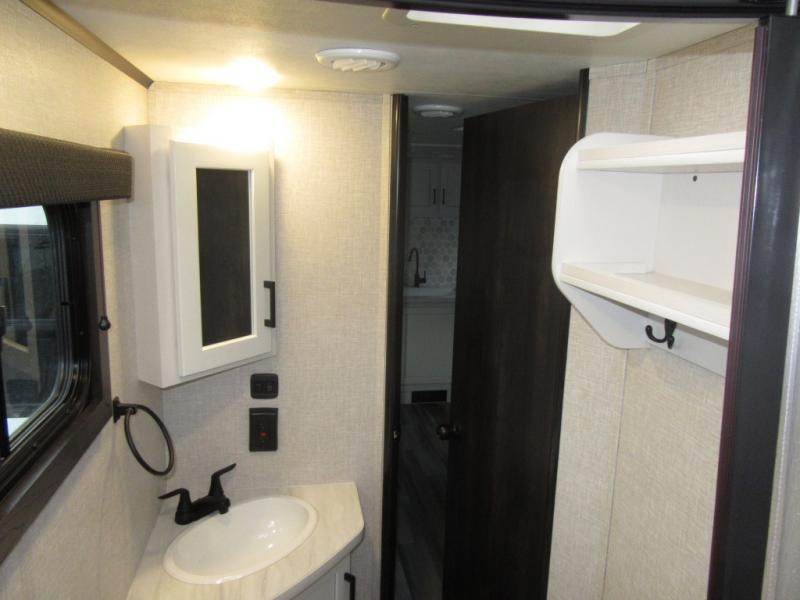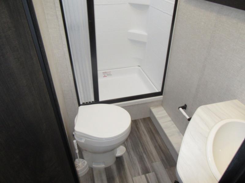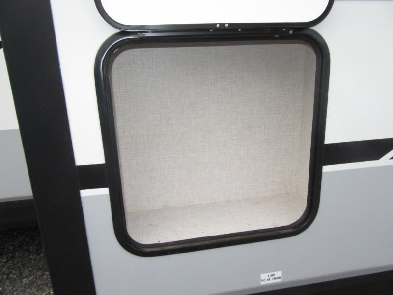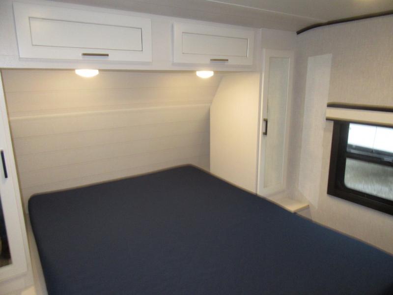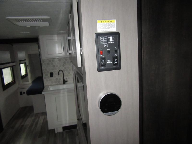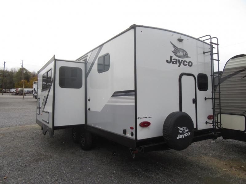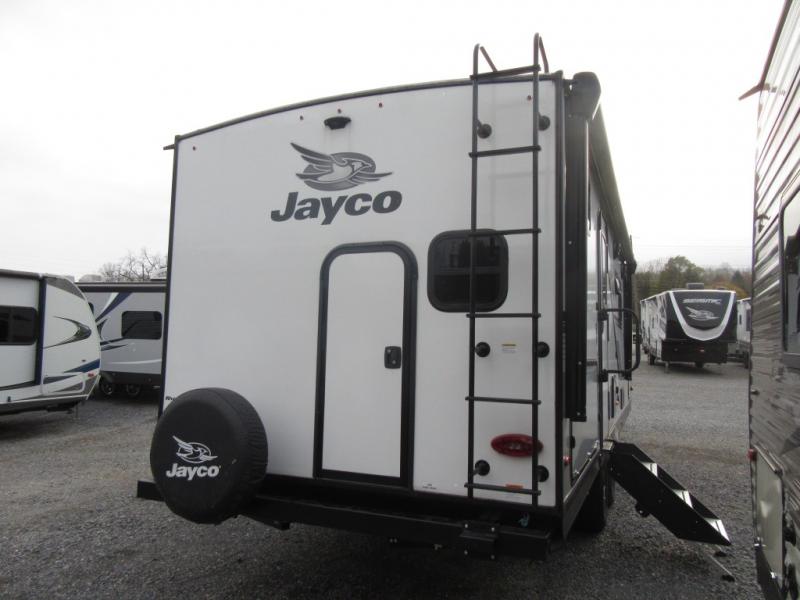 With any Jay Feather travel trailer by Jayco, you will enjoy lightweight towing, convenient exterior amenities, and at-home comforts inside! The Overlander 1 Solar Package included within the Jay Sport Package comes with a 200W solar panel and a 30-amp digital controller so you can enjoy some off-grid camping. There is also a modern graphics package with a dual-colored sidewall, LCI Solid Step fold-down aluminum tread steps on the main entry door, and Climate Shield 0 -100° F tested weather insulation package that will allow you to camp in all sorts of climates. The Customer Value Package will make time outdoors easier than ever with an outside shower, a power tongue jack and a Rock Solid stabilizer system, plus American-made nitro-filled Goodyear tires with self-adjusting electric brakes. More exterior features include a Keyed-Alike locking system, marine grade exterior speakers with blue LED accent lighting, a Magnum Truss roof system, and the list goes on! And we haven't even touched on the interior comforts, like the residential style kitchen countertops and vinyl flooring throughout, decorative backsplash, handcrafted hardwood door/drawer fronts, and multiple USB charging ports to keep you going!