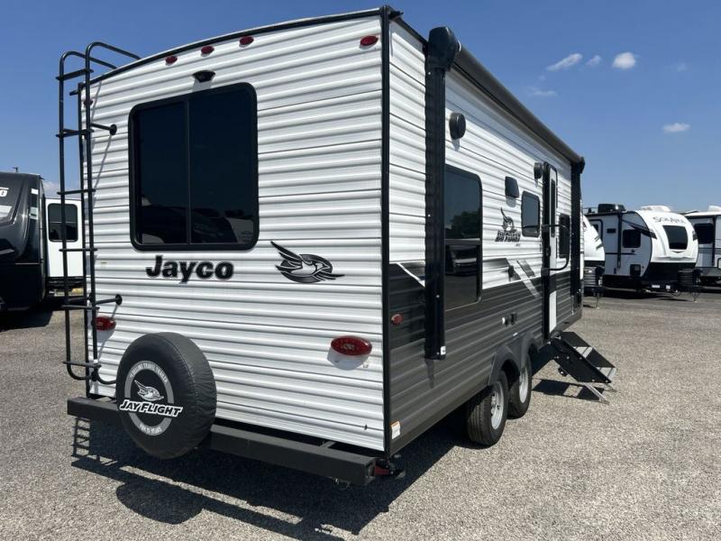 These Jayco Jay Flight travel trailers have been a family favorite for years with their lasting power and superior construction. An integrated A-frame and magnum truss roof system holds them together. When you tow one of these units you're towing the entire unit and not just the frame. With dark tinted windows, you have more privacy and safety. The vinyl flooring throughout will be easy to clean and maintain too. Come find your favorite model today!