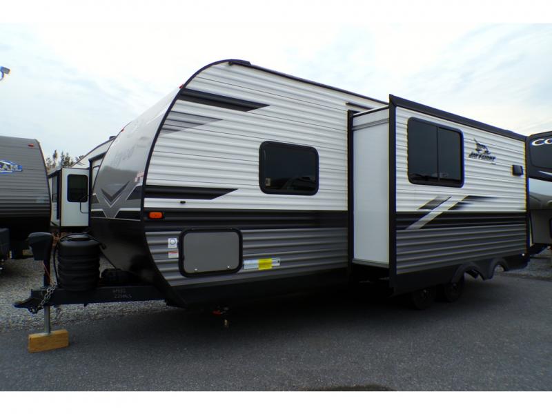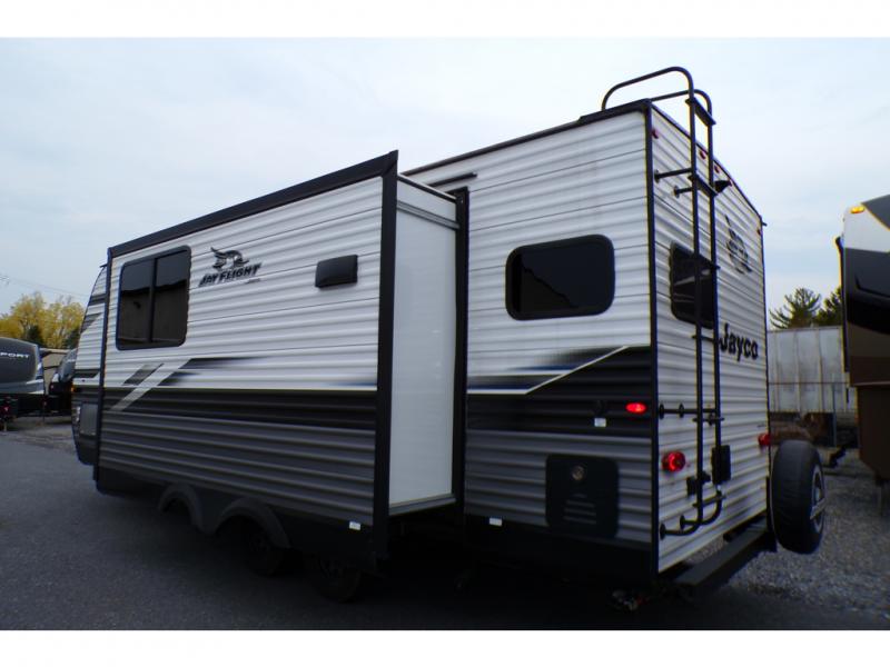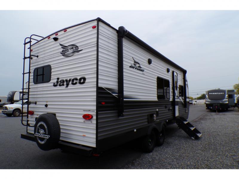 These Jayco Jay Flight travel trailers have been a family favorite for years with their lasting power and superior construction. An integrated A-frame and magnum truss roof system holds them together. When you tow one of these units you're towing the entire unit and not just the frame. With dark tinted windows, you have more privacy and safety. The vinyl flooring throughout will be easy to clean and maintain too. Come find your favorite model today!