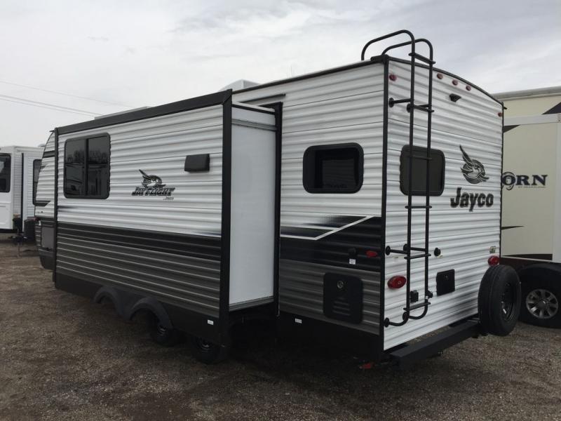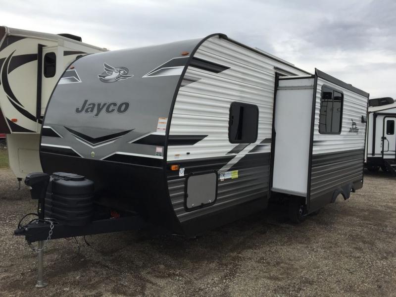 These Jayco Jay Flight travel trailers have been a family favorite for years with their lasting power and superior construction. An integrated A-frame and magnum truss roof system holds them together. When you tow one of these units you're towing the entire unit and not just the frame. With dark tinted windows, you have more privacy and safety. The vinyl flooring throughout will be easy to clean and maintain too. Come find your favorite model today!