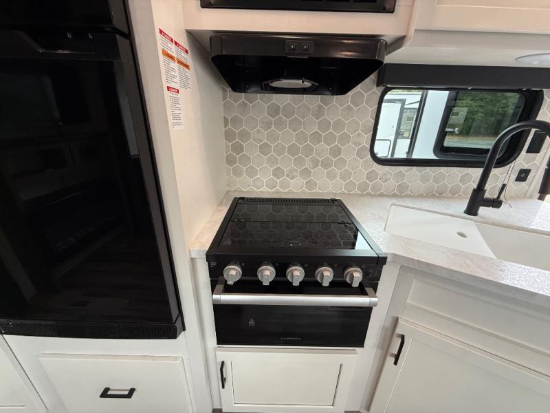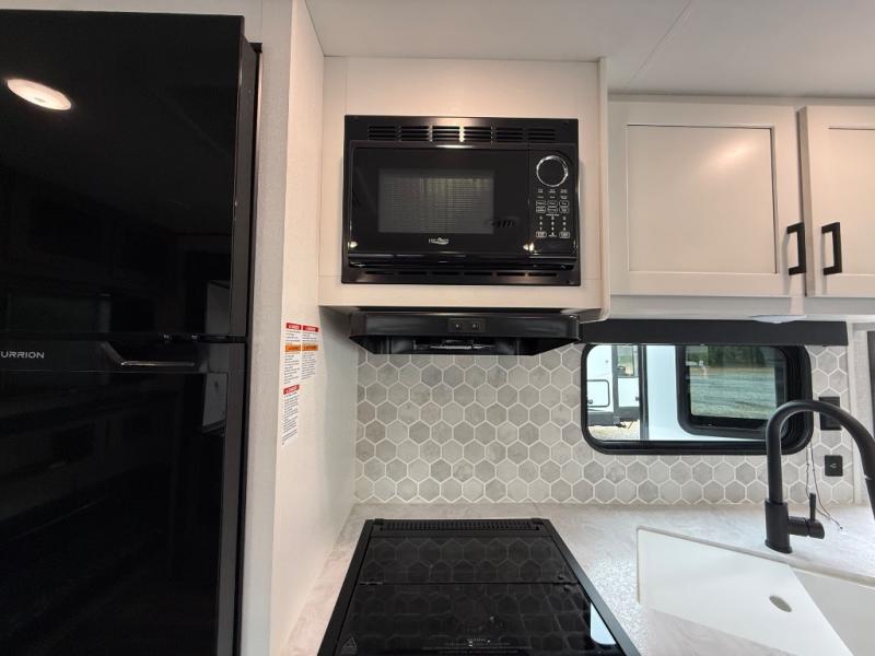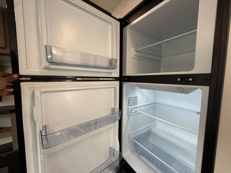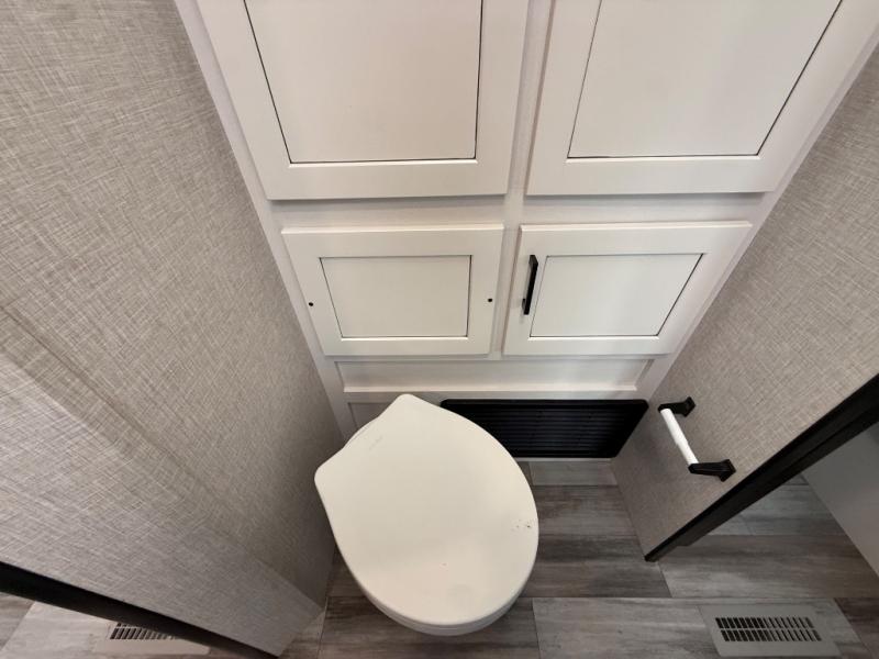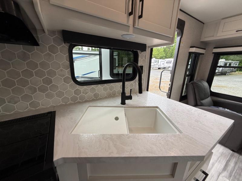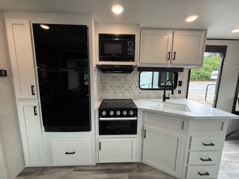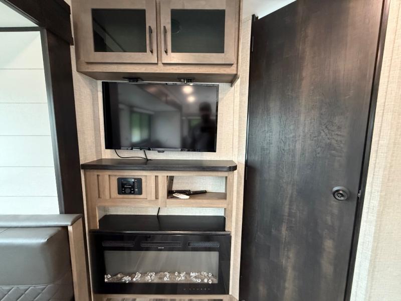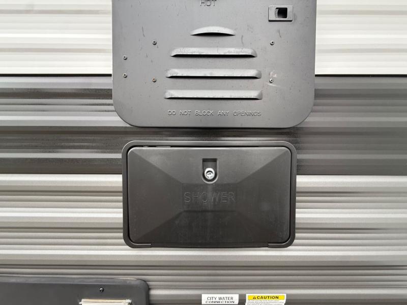 When you want to travel and see new places, this trailer gives you the flexibility to sleep two to four, plus offers a full walk-through bathroom with access from the main area and the front private bedroom. You will also appreciate having a second entry/exit door in the bedroom, a walk-around queen bed, plus dual wardrobes giving you your own side of the bed. The bathroom also has a radius shower and linen storage. The kitchen includes full amenities to make your own meals, and a pantry to keep your dry goods and snacks. You will love the rear swivel rockers with table in between to place your drinks, and the jackknife sofa plus booth dinette offer more seating, sleeping space, and extra floor space since they are within a slide.