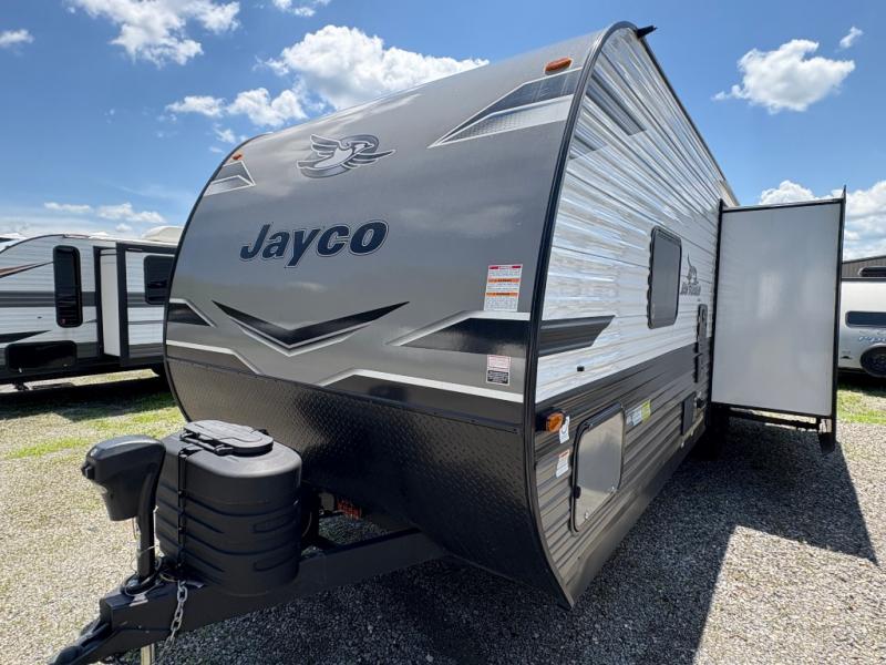 These Jayco Jay Flight travel trailers have been a family favorite for years with their lasting power and superior construction. An integrated A-frame and magnum truss roof system holds them together. When you tow one of these units you're towing the entire unit and not just the frame. With dark tinted windows, you have more privacy and safety. The vinyl flooring throughout will be easy to clean and maintain too. Come find your favorite model today!