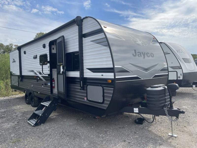 These Jayco Jay Flight travel trailers have been a family favorite for years with their lasting power and superior construction. An integrated A-frame and magnum truss roof system holds them together. When you tow one of these units you're towing the entire unit and not just the frame. With dark tinted windows, you have more privacy and safety. The vinyl flooring throughout will be easy to clean and maintain too. Come find your favorite model today!