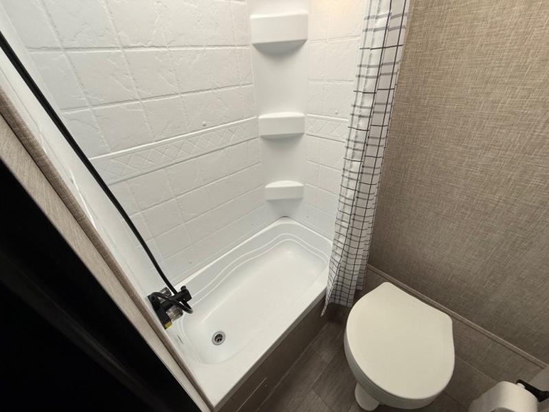 You and your family or friends can take this Jay Flight SLX travel trailer out for some fun! There is a queen bed up at the front, and there are also overhead cabinets and a bedroom wardrobe next to the bed for easy storage. The booth dinette rests on a single slide, so there is more floor space as you work in the kitchen, and it can accommodate one or two more campers for sleeping at night depending on size. The rear bathroom gives you space and privacy, and it also offers you a linen closet to store your towels. For other storage needs, you can use the 8 cu. ft. 12V refrigerator and the exterior storage compartments.