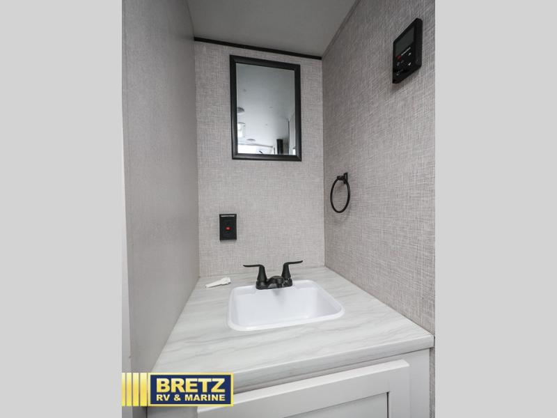 You and your family or friends can take this Jay Flight SLX travel trailer out for some fun! There is a queen bed up at the front, and there are also overhead cabinets and a bedroom wardrobe next to the bed for easy storage. The booth dinette rests on a single slide, so there is more floor space as you work in the kitchen, and it can accommodate one or two more campers for sleeping at night depending on size. The rear bathroom gives you space and privacy, and it also offers you a linen closet to store your towels. For other storage needs, you can use the 8 cu. ft. 12V refrigerator and the exterior storage compartments.