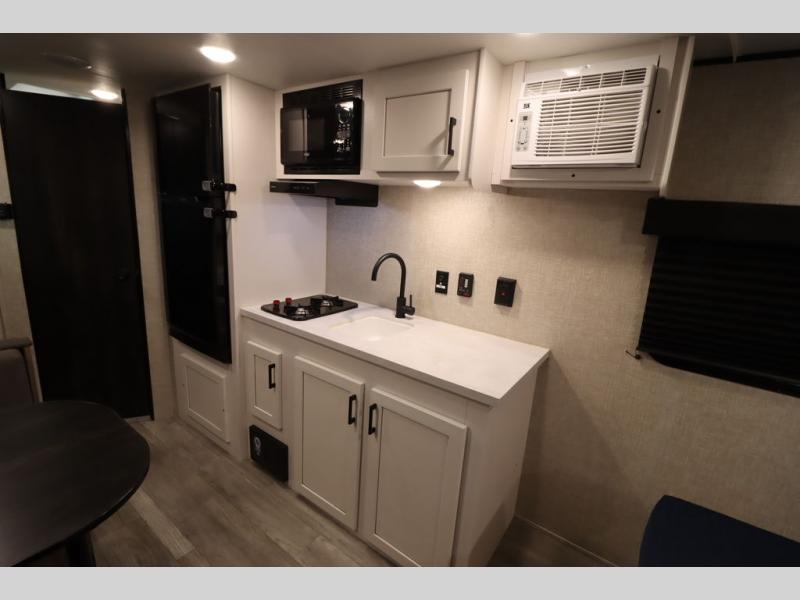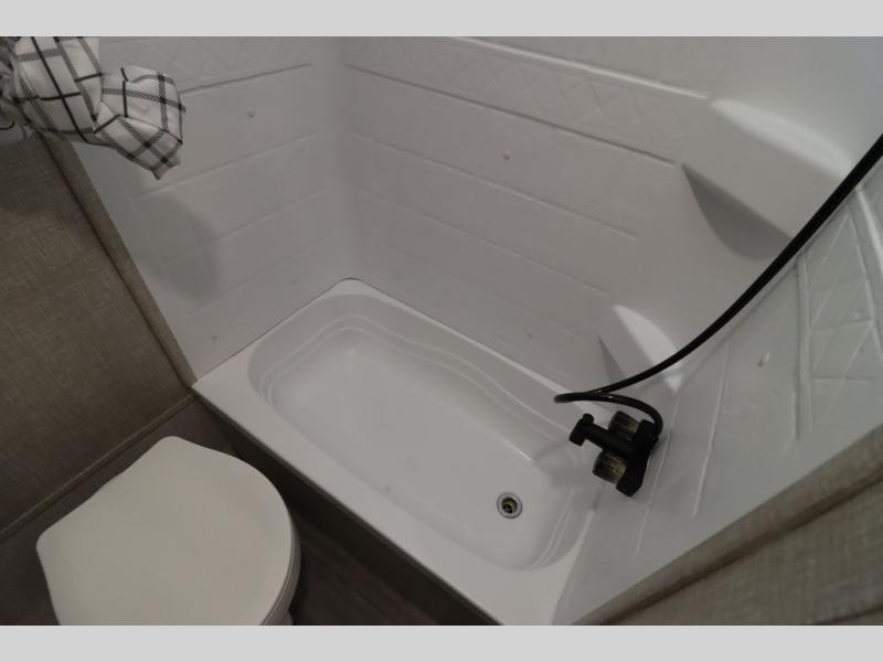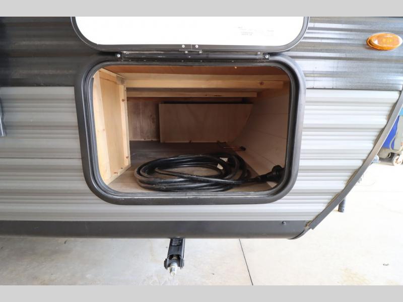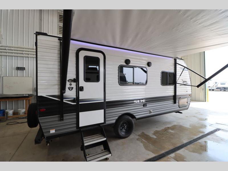 Gain some freedom to travel with this Jay Flight SLX travel trailer! You can rest comfortably each night on an RV queen bed that can be sectioned off into a semi-private bedroom with a privacy curtain. There is a private bathroom with a tub/shower and toilet so that you can stay clean, and the kitchen has a two-burner range and microwave oven for all of your inside cooking needs. Outside, there is a 13' power awning to protect you from too much sun, and you can also store extra gear in the exterior storage compartment which is quite handy.