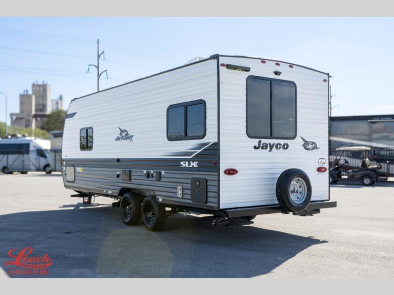 The Jayco Jay Flight SLX travel trailer is quite easy to own because it is lightweight for an easier towing experience. Built on a fully integrated A-frame with galvanized-steel, impact-resistant wheel wells, the Jay Flight SLX has quality at its very foundation. That quality continues on to the electric self-adjusting brakes, easy-lube hubs, Magnum Truss roof system, and LP quick connect. Some of what the mandatory Customer Value Package includes backup camera prep, Keyed-Alike entry and baggage doors, marine grade exterior speakers, and an on-demand tankless water heater. The optional STX Edition for Indiana built units only and the optional Baja Package built for Idaho units only includes Goodyear off-road tires, an enclosed underbelly, a deluxe graphics package, and a wide-stance axle to name a few features.