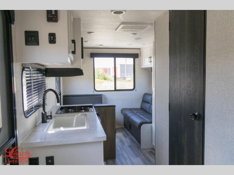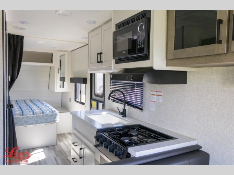 Camping in the woods is just what the doctor ordered and this trailer will provide all the interior comforts you need! There is a three burner cooktop and a microwave oven to prepare meals each day, plus an 8 cu. ft. 12V refrigerator for cold items. After your meal is made, you can dine at the booth dinette or relax on the jack-knife sofa, and these areas can become sleeping space for two to three guests at night. The full bath with a tub/shower means you won't have to use the camp's facilities and the 16' power awning will provide protection from the sun as you visit with other campers!