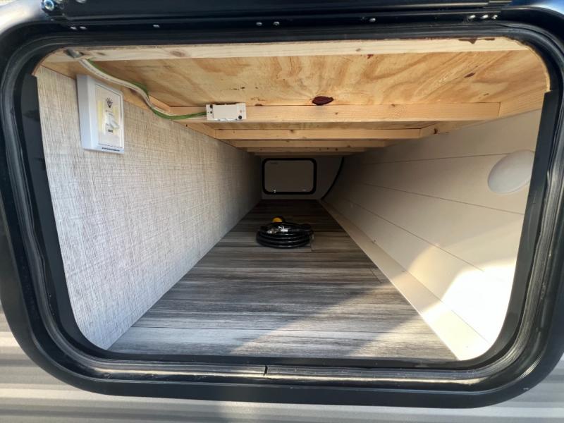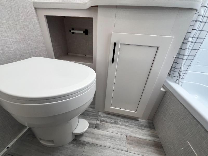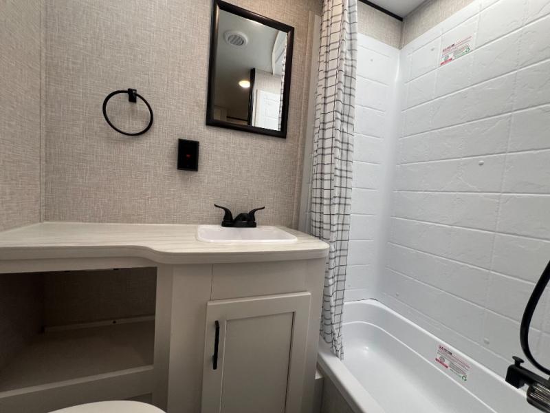 Camping in the woods is just what the doctor ordered and this trailer will provide all the interior comforts you need! There is a three burner cooktop and a microwave oven to prepare meals each day, plus an 8 cu. ft. 12V refrigerator for cold items. After your meal is made, you can dine at the booth dinette or relax on the jack-knife sofa, and these areas can become sleeping space for two to three guests at night. The full bath with a tub/shower means you won't have to use the camp's facilities and the 16' power awning will provide protection from the sun as you visit with other campers!