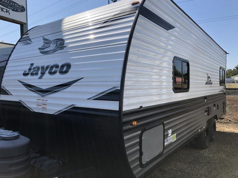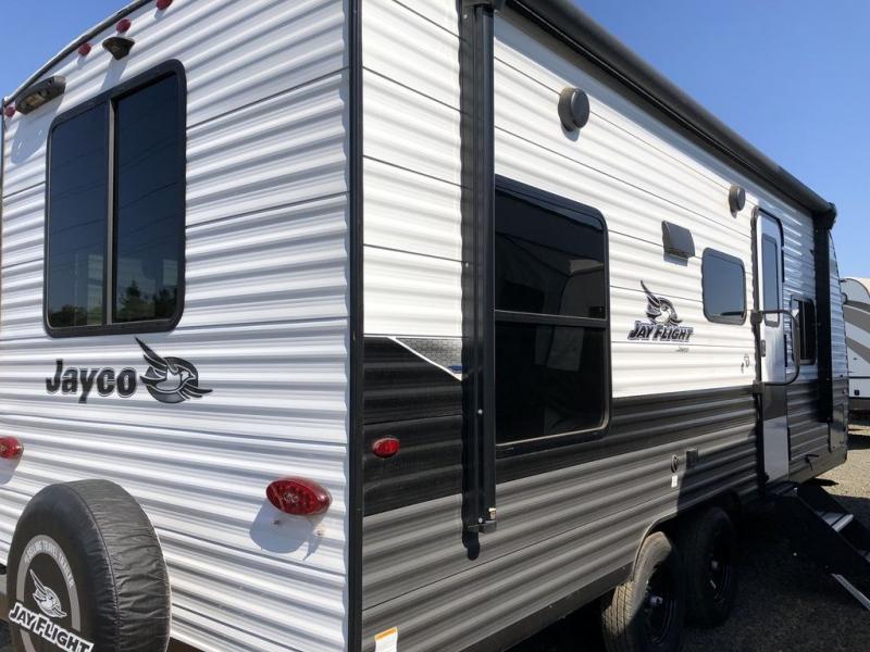 The Jayco Jay Flight SLX travel trailer is quite easy to own because it is lightweight for an easier towing experience. Built on a fully integrated A-frame with galvanized-steel, impact-resistant wheel wells, the Jay Flight SLX has quality at its very foundation. That quality continues on to the electric self-adjusting brakes, easy-lube hubs, Magnum Truss roof system, and LP quick connect. Some of what the mandatory Customer Value Package includes backup camera prep, Keyed-Alike entry and baggage doors, marine grade exterior speakers, and an on-demand tankless water heater. The optional STX Edition for Indiana built units only and the optional Baja Package built for Idaho units only includes Goodyear off-road tires, an enclosed underbelly, a deluxe graphics package, and a wide-stance axle to name a few features.