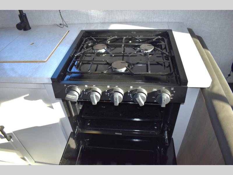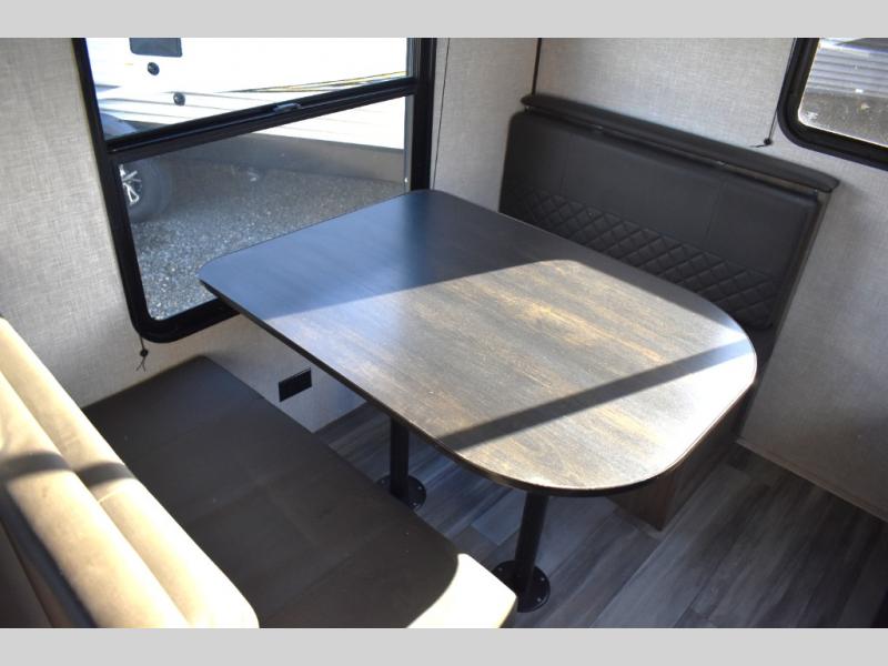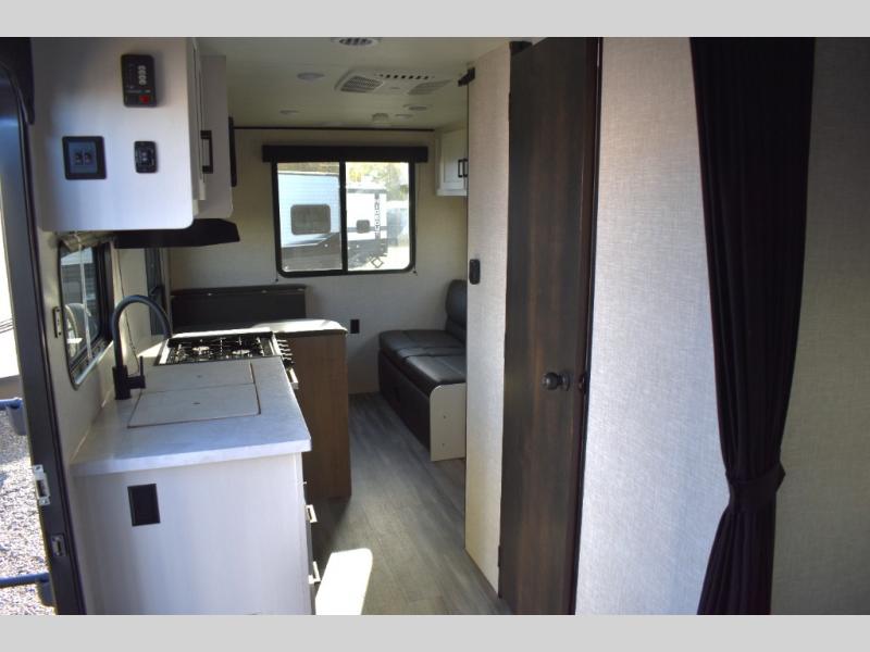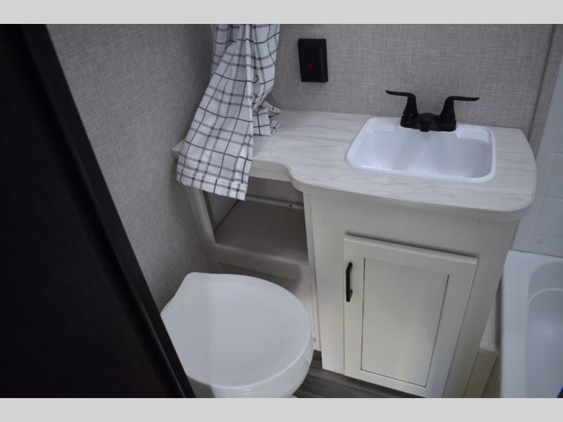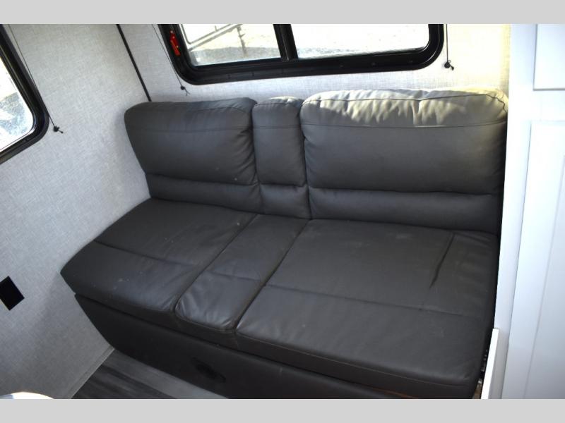 Camping in the woods is just what the doctor ordered and this trailer will provide all the interior comforts you need! There is a three burner cooktop and a microwave oven to prepare meals each day, plus an 8 cu. ft. 12V refrigerator for cold items. After your meal is made, you can dine at the booth dinette or relax on the jack-knife sofa, and these areas can become sleeping space for two to three guests at night. The full bath with a tub/shower means you won't have to use the camp's facilities and the 16' power awning will provide protection from the sun as you visit with other campers!
