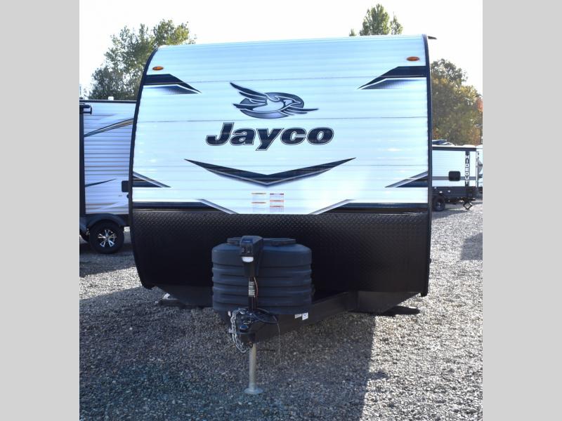 The Jayco Jay Flight SLX travel trailer is quite easy to own because it is lightweight for an easier towing experience. Built on a fully integrated A-frame with galvanized-steel, impact-resistant wheel wells, the Jay Flight SLX has quality at its very foundation. That quality continues on to the electric self-adjusting brakes, easy-lube hubs, Magnum Truss roof system, and LP quick connect. Some of what the mandatory Customer Value Package includes backup camera prep, Keyed-Alike entry and baggage doors, marine grade exterior speakers, and an on-demand tankless water heater. The optional STX Edition for Indiana built units only and the optional Baja Package built for Idaho units only includes Goodyear off-road tires, an enclosed underbelly, a deluxe graphics package, and a wide-stance axle to name a few features.