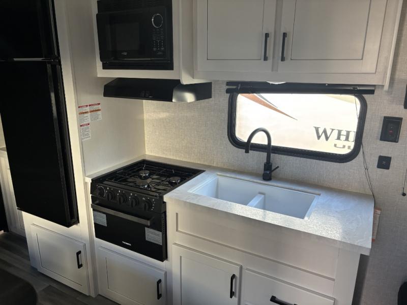 You can comfortably sleep eight to ten people in this trailer thanks to the double-size bunks, the RV queen bed in the front bedroom, plus the booth dinette and jack-knife sofa in the main living area! The chef of your crew will have a three burner cooktop and microwave oven to prepare meals, and everyone can store their favorite drinks in the 8 cu. ft. 12V refrigerator. The bathroom includes a shower and a toilet, with the sink just outside of this room so others can brush their teeth if one is taking a shower before bed. The outside storage will let you bring along fishing poles and the 16' power awning with LED lights will create a nice place to gather in the evenings!