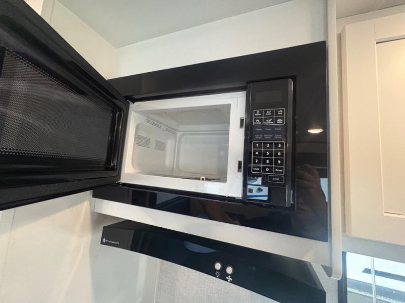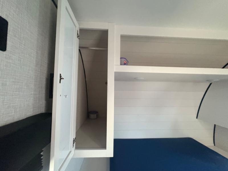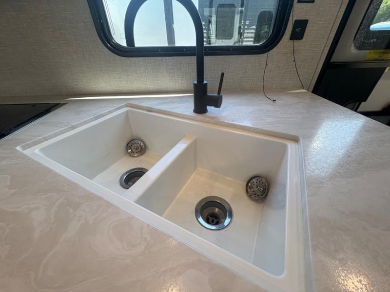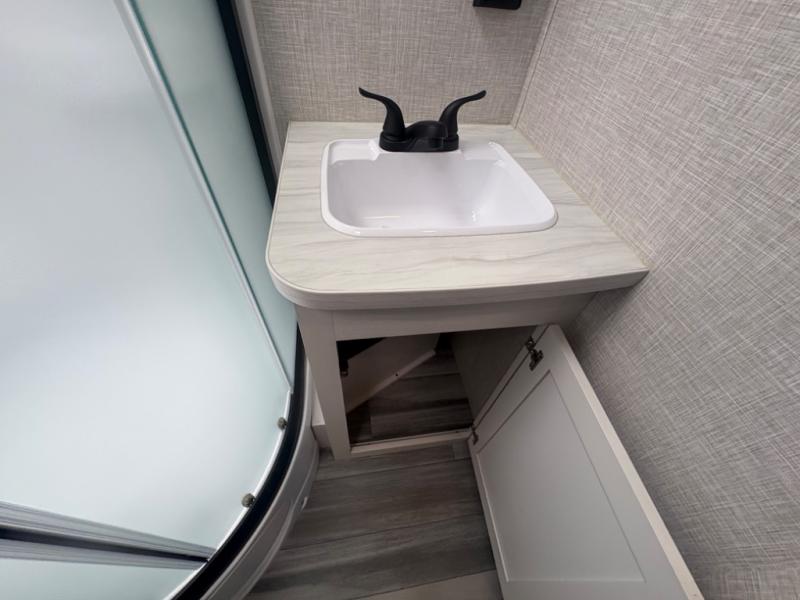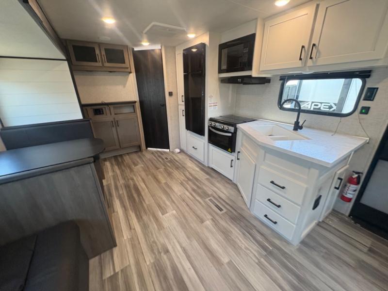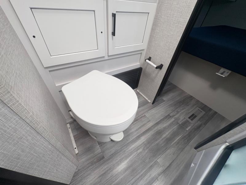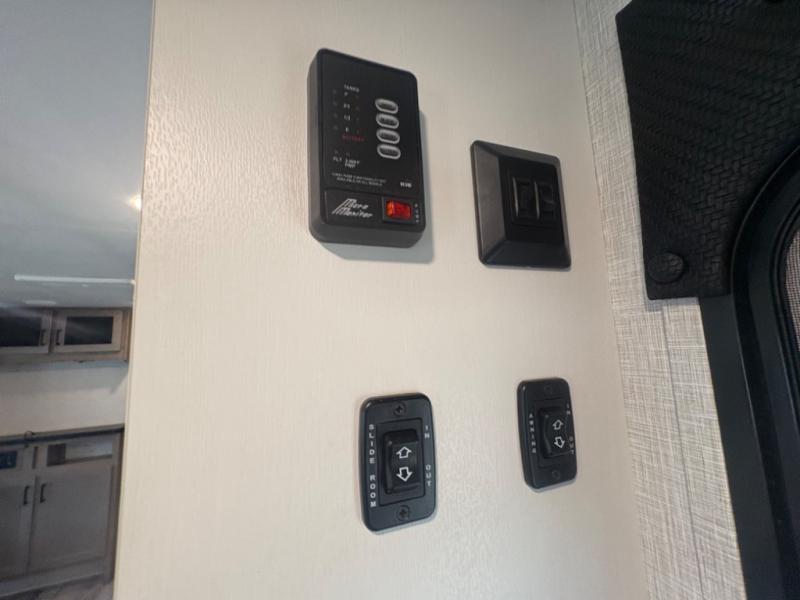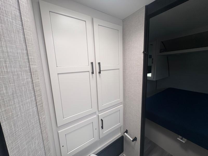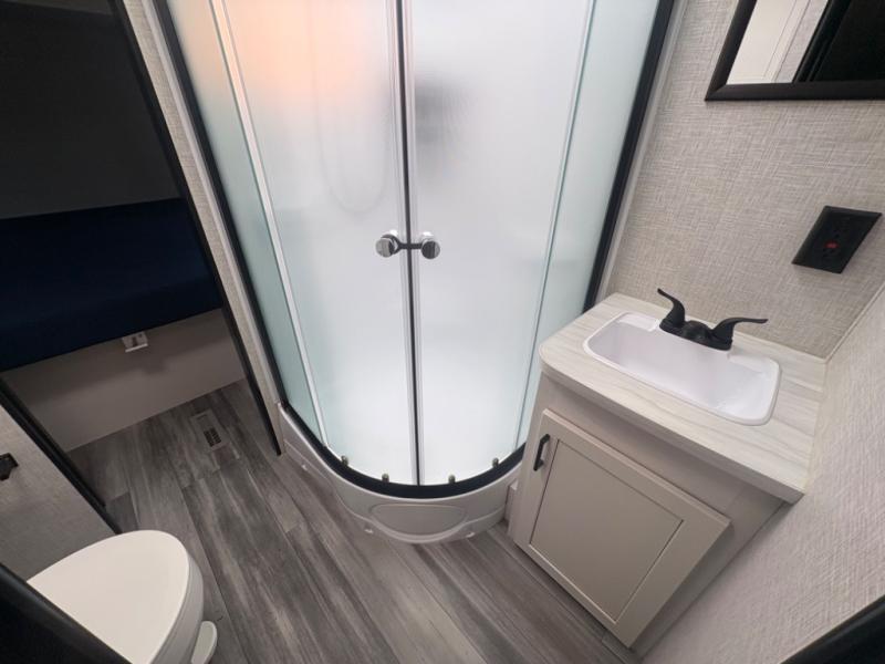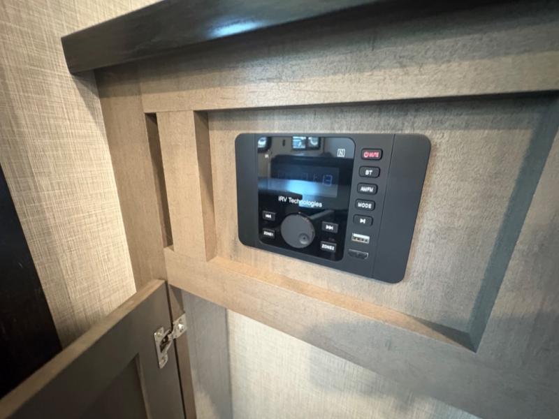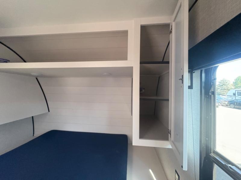 You can comfortably sleep up to six people in this trailer thanks to the RV queen bed in the front bedroom, plus the booth dinette and jack-knife sofa in the main living area! The chef of your crew will have a three burner cooktop and microwave oven to prepare meals, and everyone can store their favorite drinks in the 8 cu. ft. 12V refrigerator. The walk-through bath is spacious and includes a radius shower, toilet, a sink, and linen closet and is the full width of the unit. The outside storage will let you bring along camp chairs and games, fishing poles and more, plus the 18' power awning with LED lights will create a nice place to gather in the evenings!