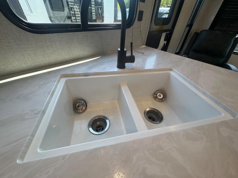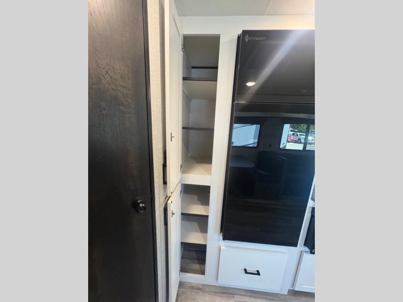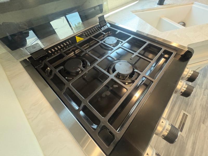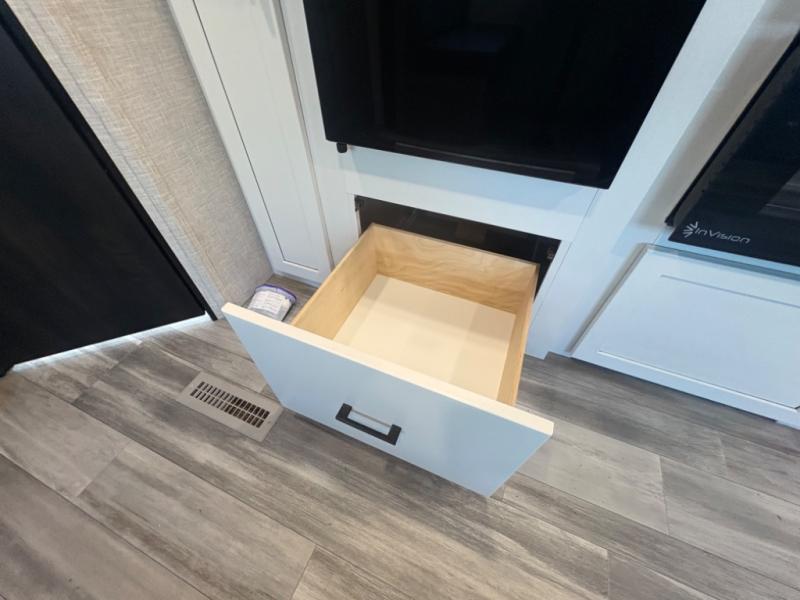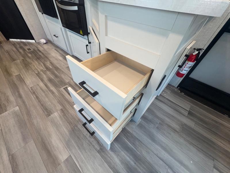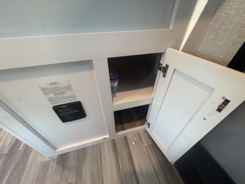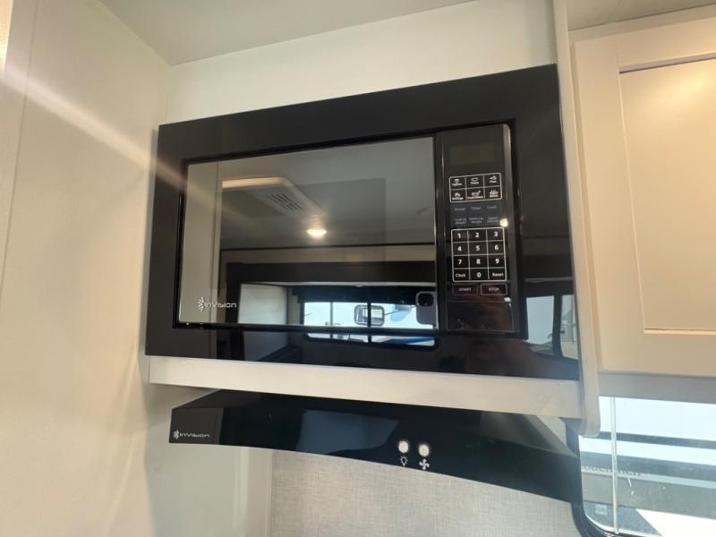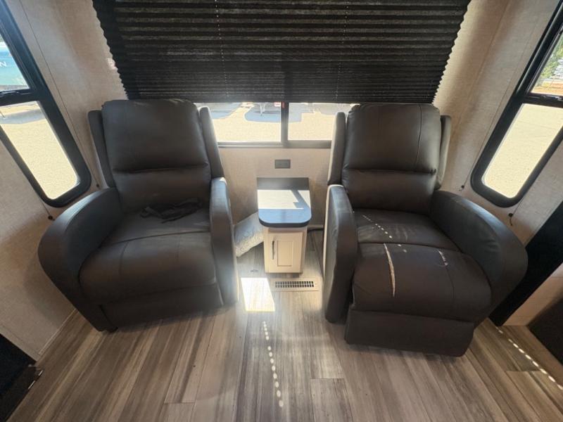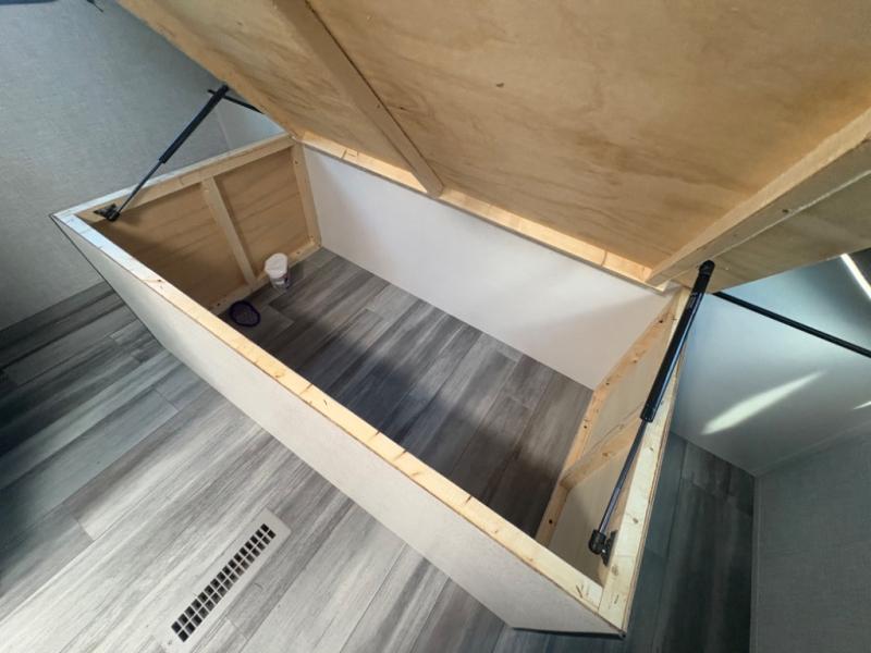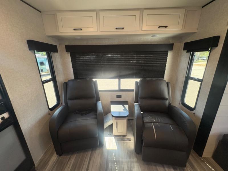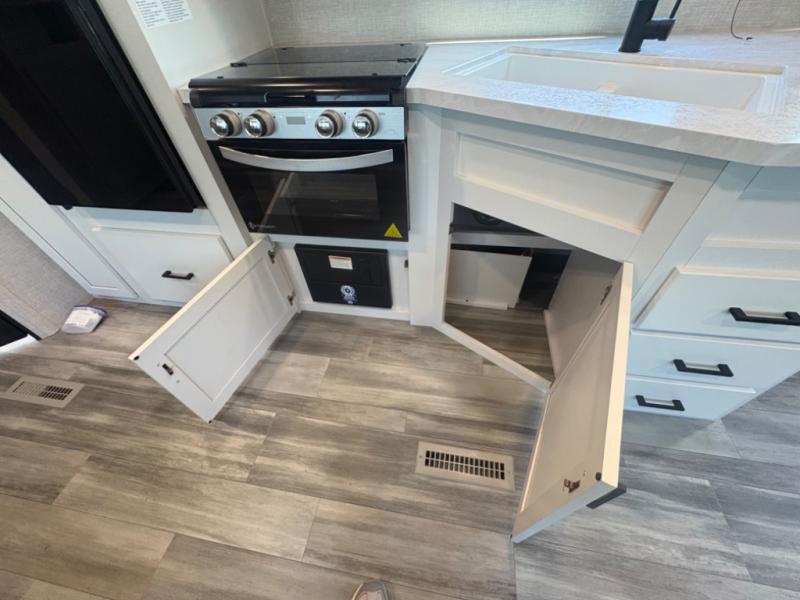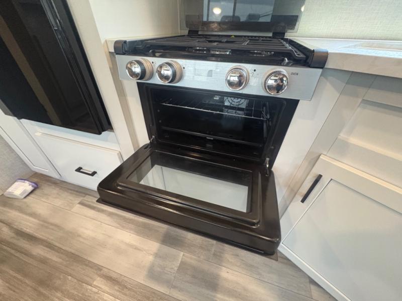 You can comfortably sleep up to six people in this trailer thanks to the RV queen bed in the front bedroom, plus the booth dinette and jack-knife sofa in the main living area! The chef of your crew will have a three burner cooktop and microwave oven to prepare meals, and everyone can store their favorite drinks in the 8 cu. ft. 12V refrigerator. The walk-through bath is spacious and includes a radius shower, toilet, a sink, and linen closet and is the full width of the unit. The outside storage will let you bring along camp chairs and games, fishing poles and more, plus the 18' power awning with LED lights will create a nice place to gather in the evenings!