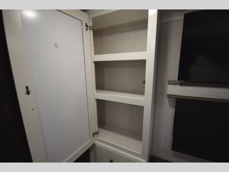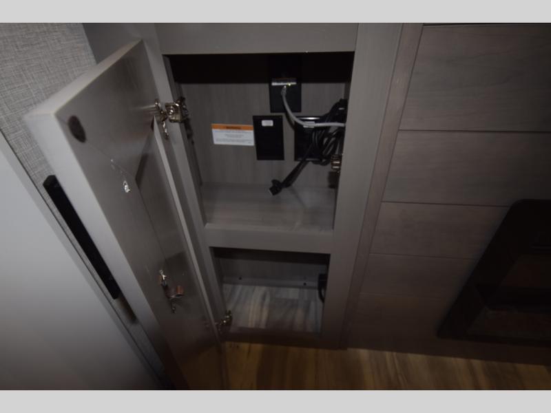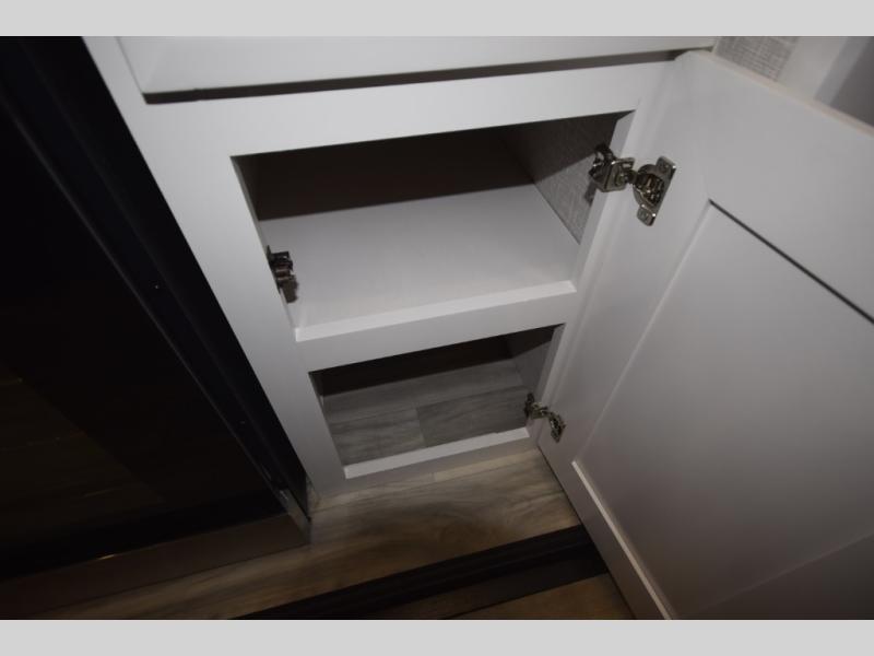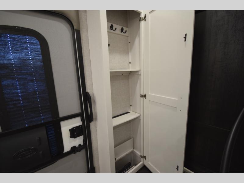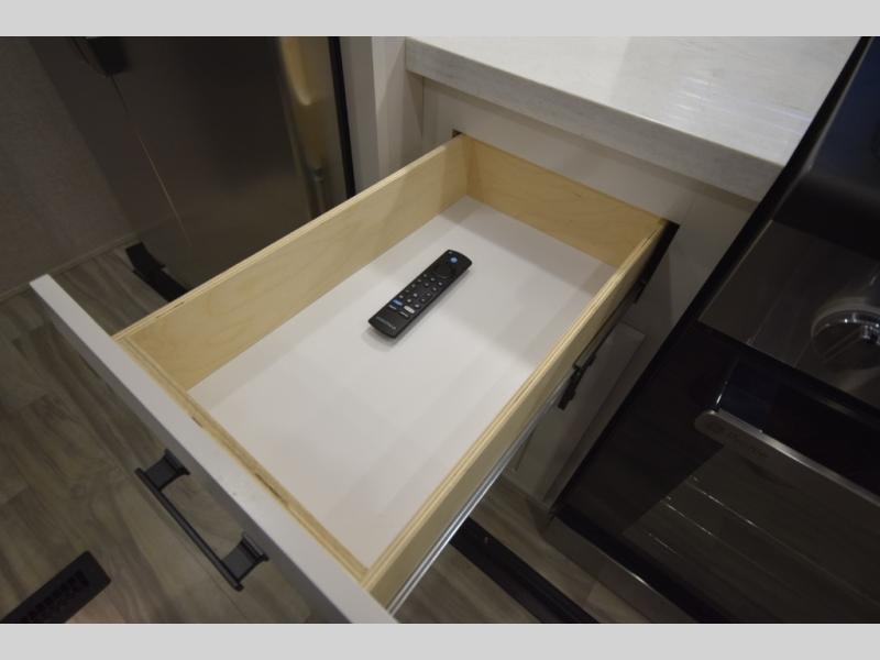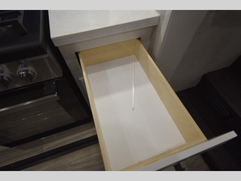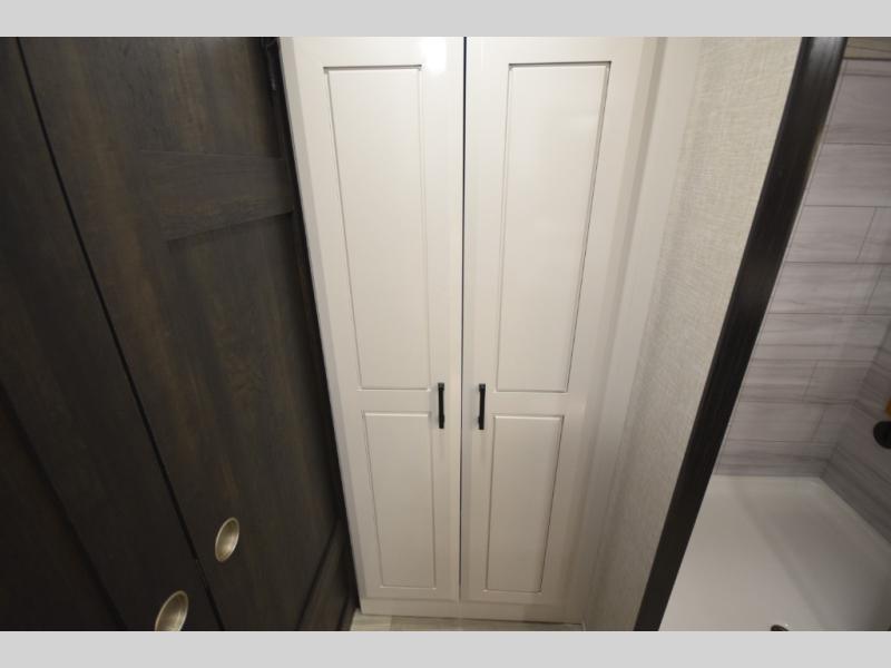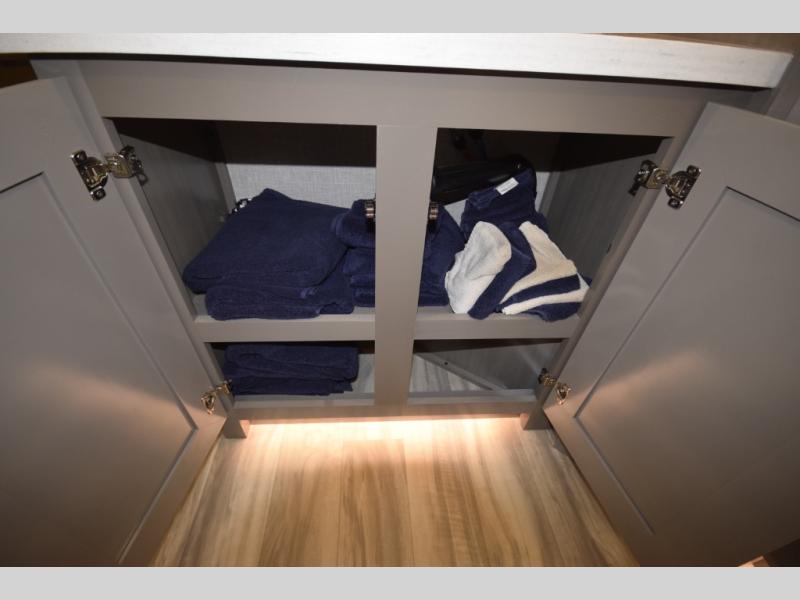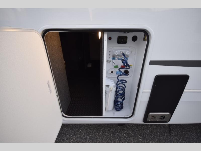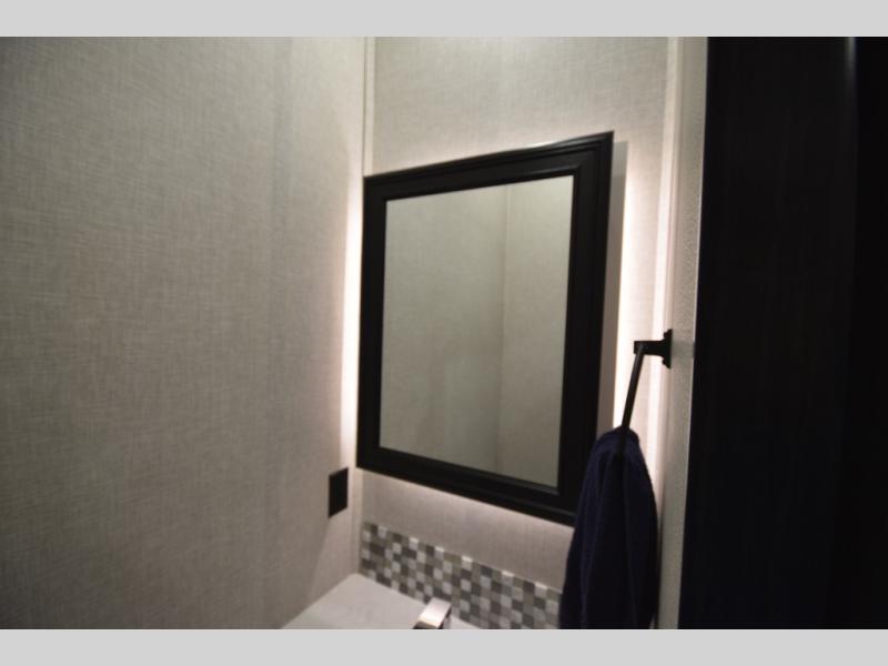 Inside, premium finishes elevate every trip, including handcrafted hardwood glazed cabinetry, farmhouse-style stainless steel sink, vinyl flooring throughout, and a central vacuum system. Add in wireless remote controls, USB ports throughout, and thoughtful residential-style touches, and you have a fifth wheel built for excitement, exploration, and effortless luxury—where every adventure feels like home.