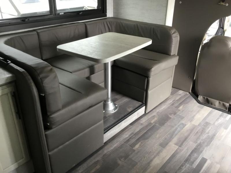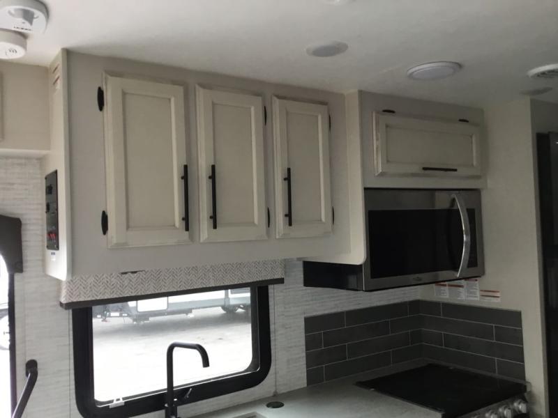 Easily load up and head out for an adventure in this Redhawk with sleeping space for five, a full bathroom, and kitchen amenities to stay fed the whole trip. Once at your campsite, easily let out the slide and the 16' electric awning and plan your next activity. You an use the full bath, make a meal in the kitchen with the Furrion all-in-one cooktop and oven, plus the residential-size microwave, and grab your beverage from the 10 cu. ft. refrigerator. The driver and passenger seats swivel for more interior seating, and if you like, choose the theater seating option in place of the U-shaped dinette.