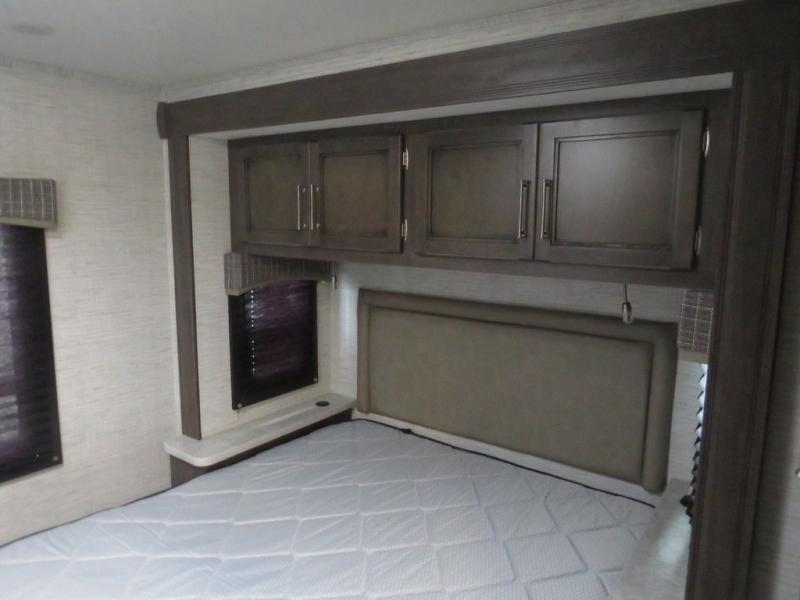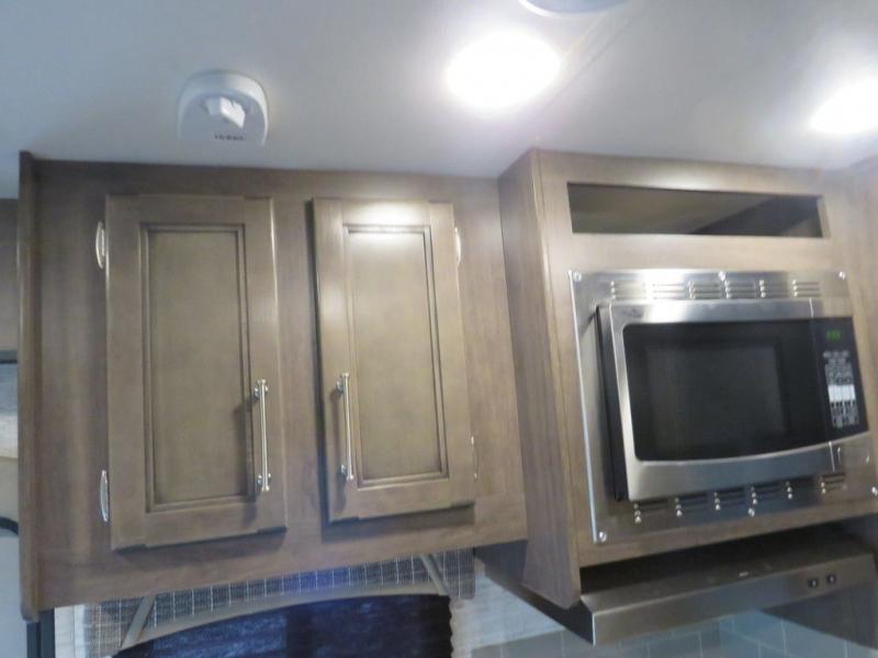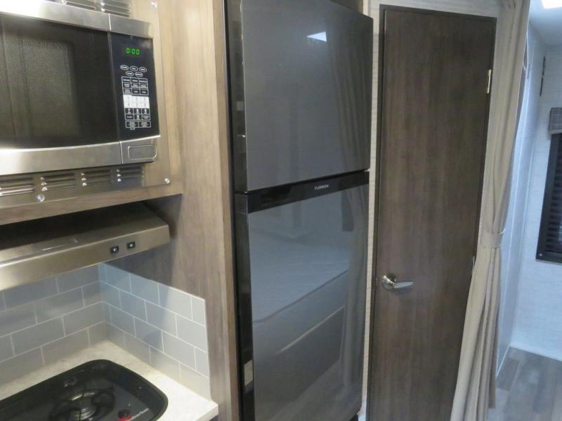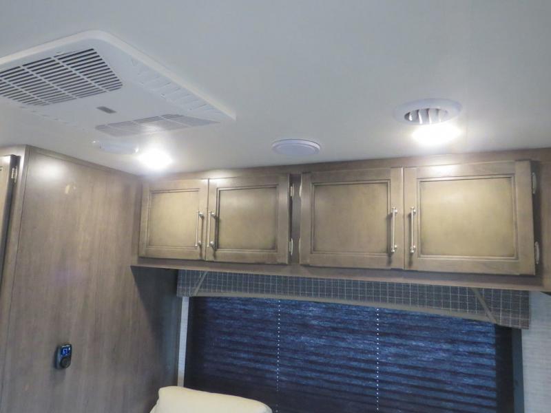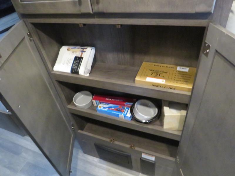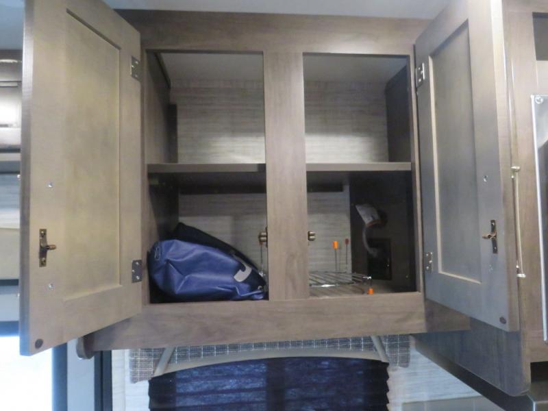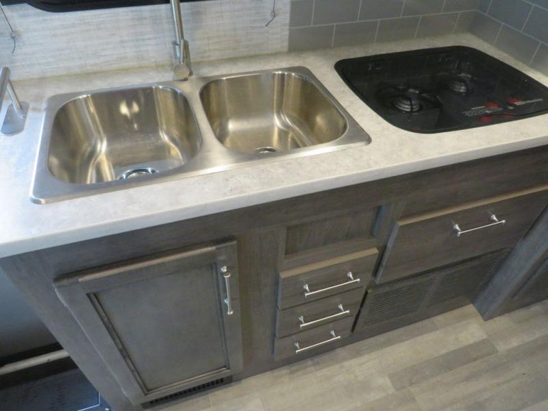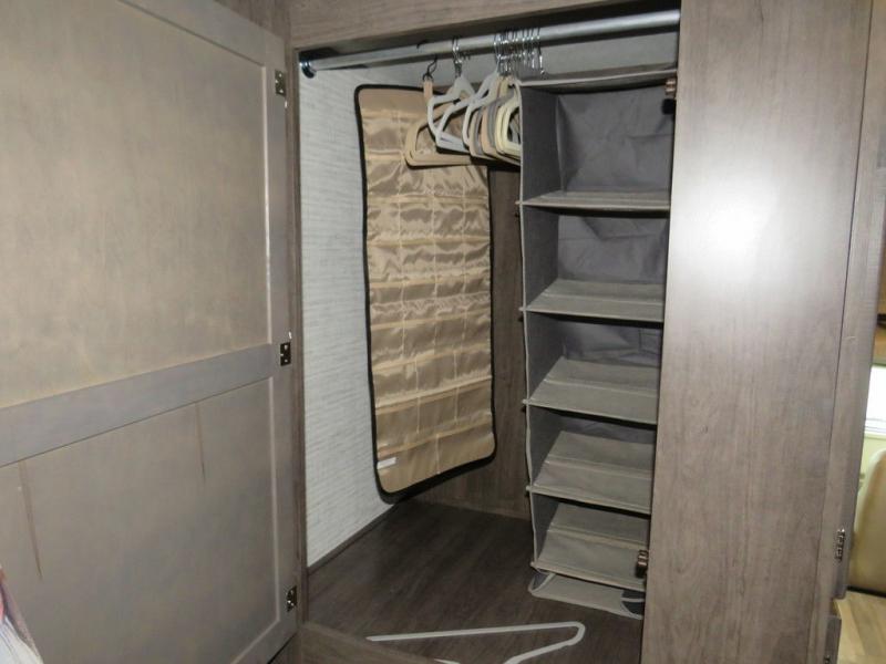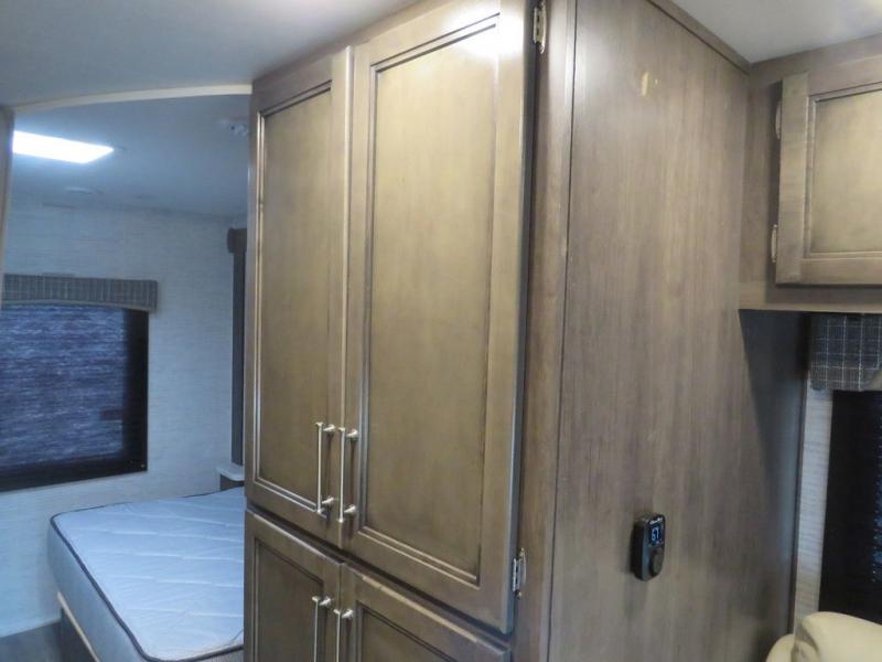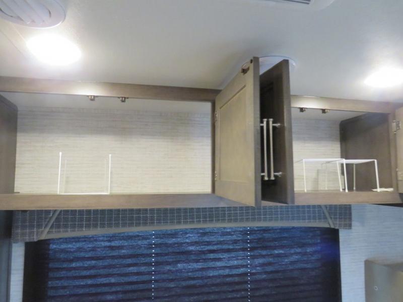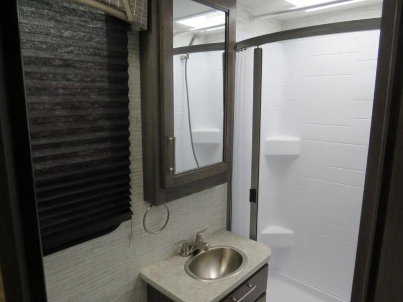 There's a comfortable place to sleep for everyone in this motorhome! From the corner 60" x 70" queen bed that slides out to the bunk over cab, and even the 42" x 70" booth dinette once converted. You can store your favorite snacks and hang up your clothes in the wardrobe/pantry. The chef can prepare delicious meals with the two burner cooktop and if there happens to be any leftovers then they can be stored in the 10 cu. ft. 12V refrigerator. The rear corner bathroom has a 24" x 36" shower that you are sure to enjoy after a long day of traveling!