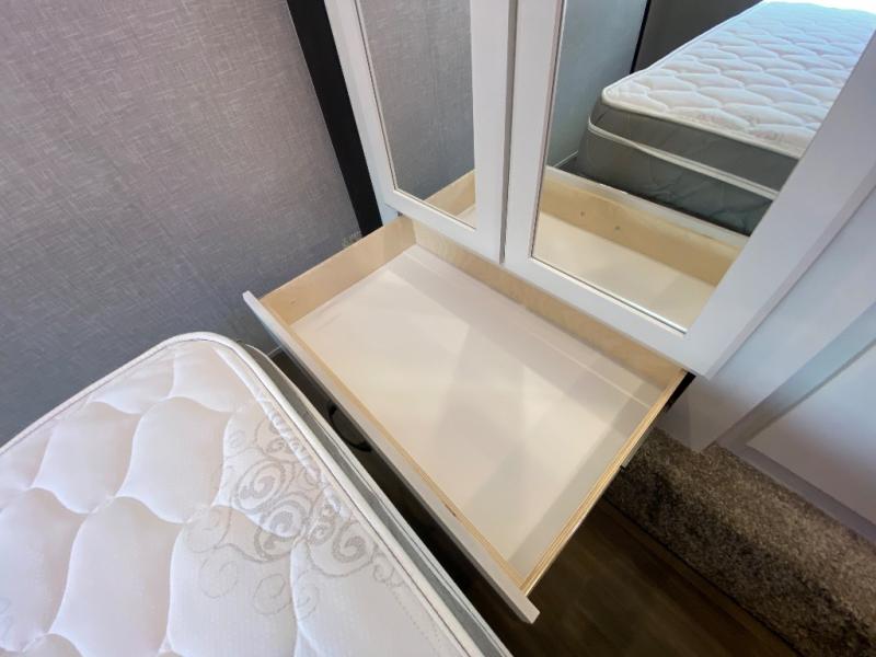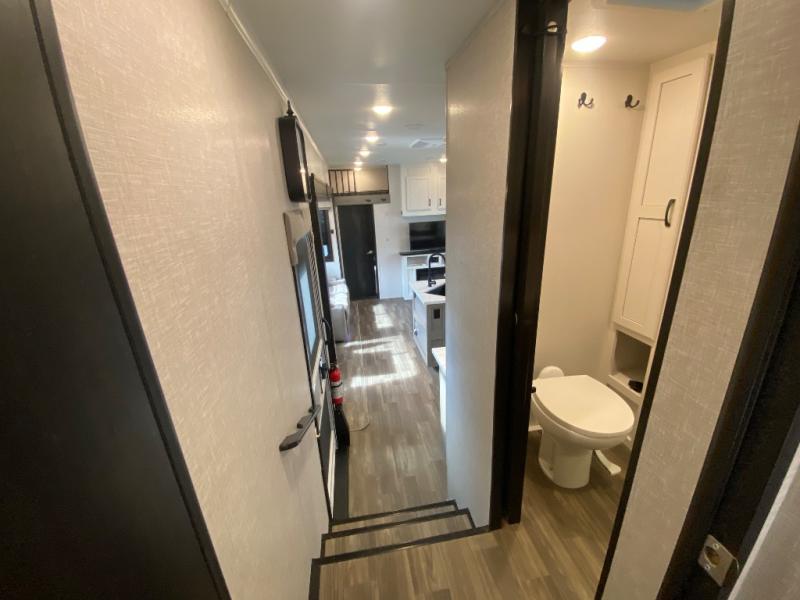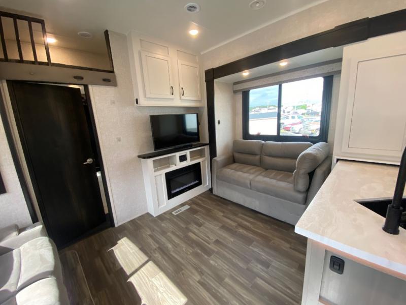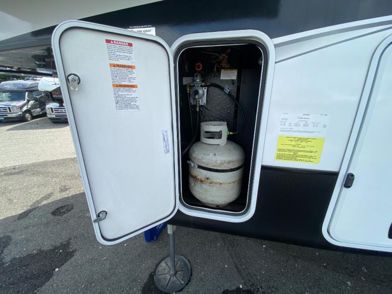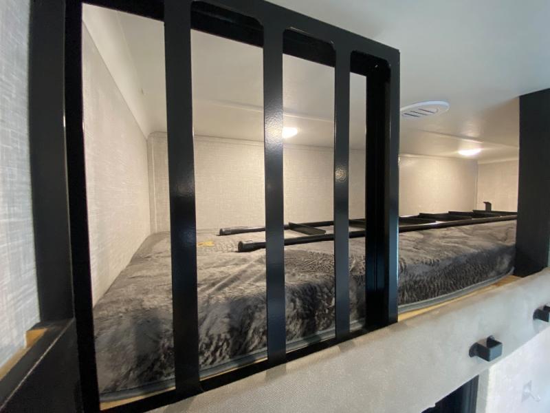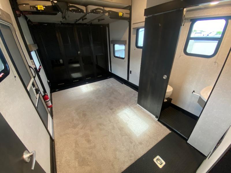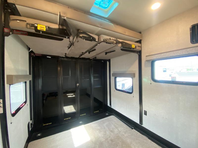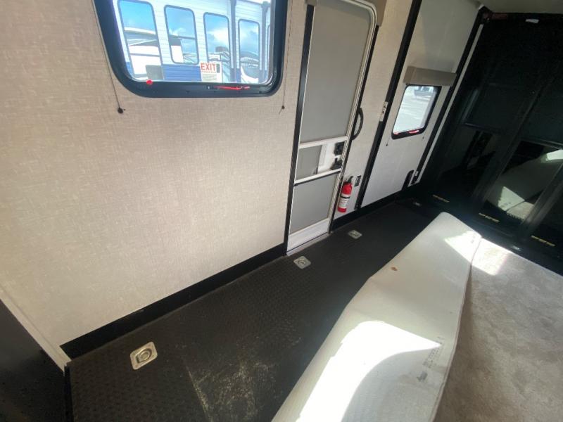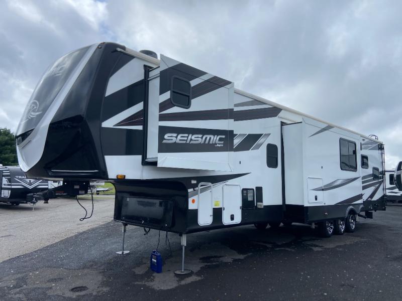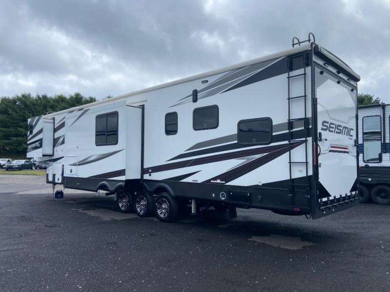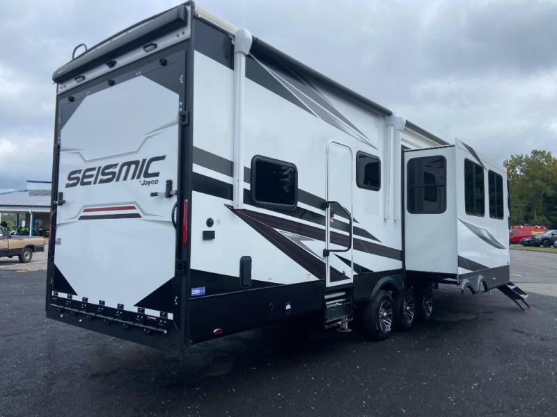 One look at the Seismic toy haulers by Jayco, and you'll never go back! Each model features a custom automotive-grade vinyl exterior graphics package, a painted fiberglass front cap with built-in LED lighting, and 102" wide-body structural steel I-beam construction. You'll find the pass-through storage with Slam-Latch baggage doors will make unpacking easier than ever, and the rear ramp door/patio with anti-slip, non-skid flooring will allow you to unload your toys with no trouble at all. These toy haulers feature a three seasons garage wall/doors, a 30 gallon fuel tank with a timer, and exterior marine-grade speakers to keep the party going. The Climate Shield zero degree tested weather protection includes a 35,000 BTU furnace, PEX plumbing, and a fully enclosed and heated underbelly so you can enjoy your adventures year around. And we haven't even touched on the interior luxuries you'll find, like solid hardwood cabinet doors, residential vinyl flooring made in the USA, night shades, and more!