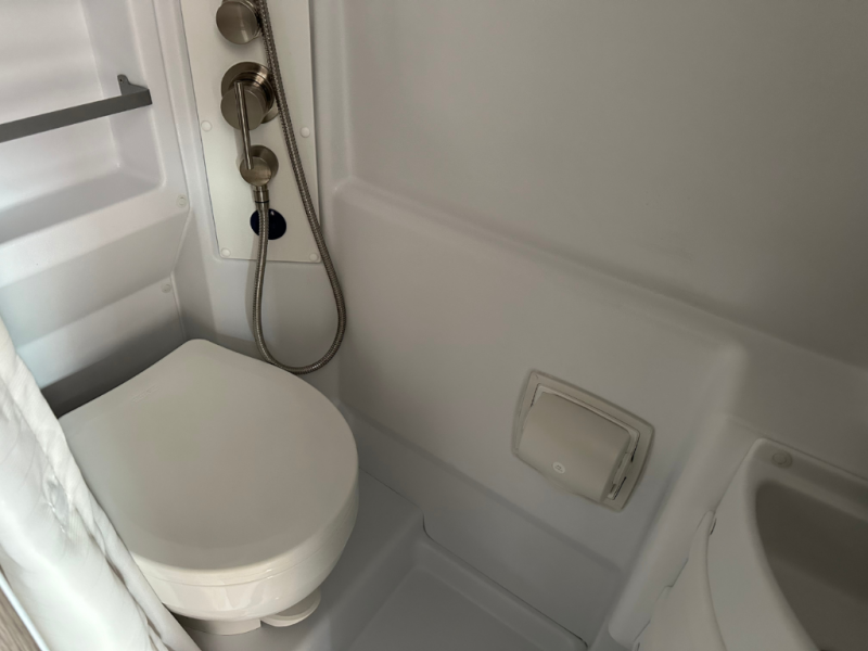 Head into the great unknown with this cozy gas motorhome for two. You will enjoy the drive on swivel captain's seats, plus there are two additional cab seats if you're planning a day trip with friends. Prepare a quick lunch in the convection microwave when you stop, and grab a cold drink from the 5.3 cu. ft. DC refrigerator. This model includes a 76" sofa to relax on during the day, which can be converted to a 48" x 76" extended bed at night, and you can freshen up each morning in the convenient 25" x 47" wet bath! You will also love the pop-top roof area that will allow you to sleep up to four!