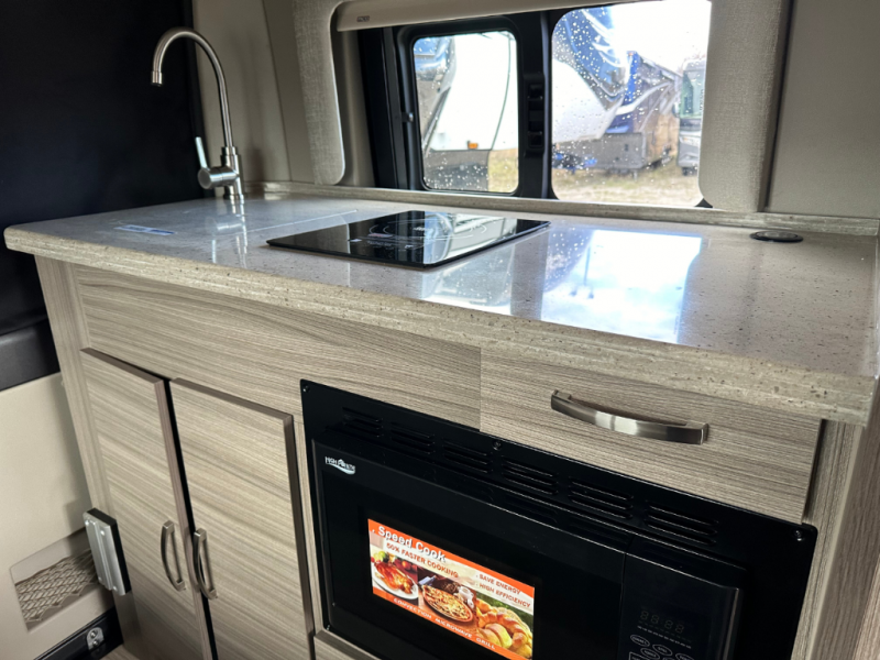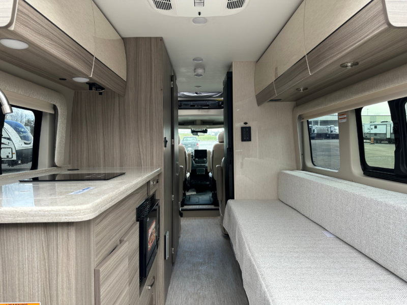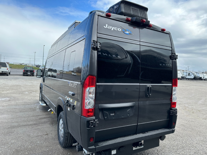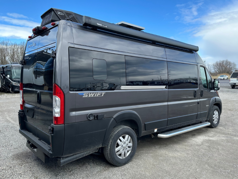 Head out on your greatest adventures with one of these Jayco Swift Class B gas motorhomes! Off-grid camping is made hassle-free with the 200-watt roof-mounted GoPower solar panel, plus there is an Onan 2800W generator with auto-gen start for all your other power needs. Each model includes the JRide system with Hellwig helper springs and a premium heavy-duty suspension for smooth handling, and the Thule armless patio awning with LED lights will create an outdoor living space you are sure to love. Head inside to find a solid surface kitchen countertop with a pull-out extension, four sliding vented windows, a soft-touch vinyl ceiling, plus many more comforts. The Uconnect 5 NAV infotainment center with Apple CarPlay® and Android Auto™ will also come in handy as you travel to your destination!
