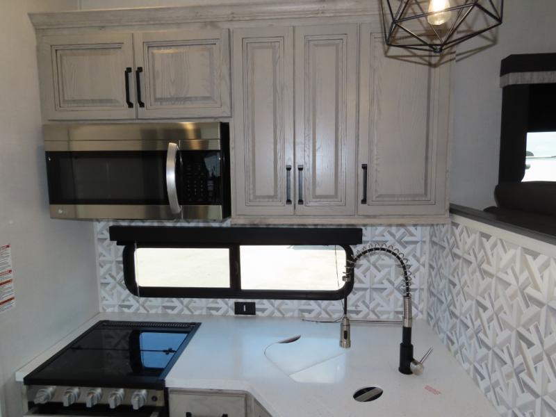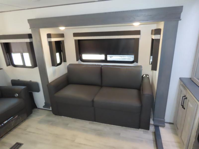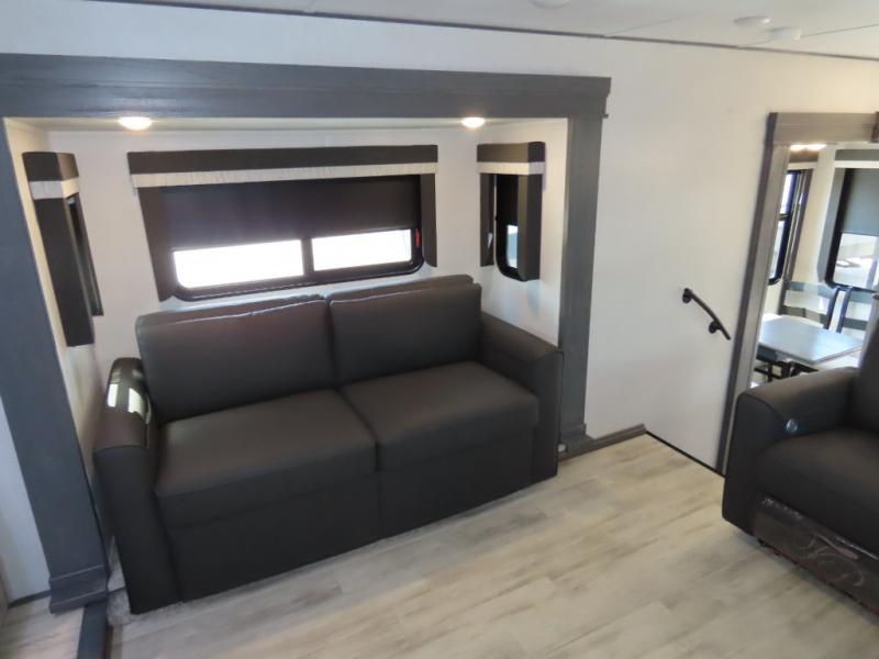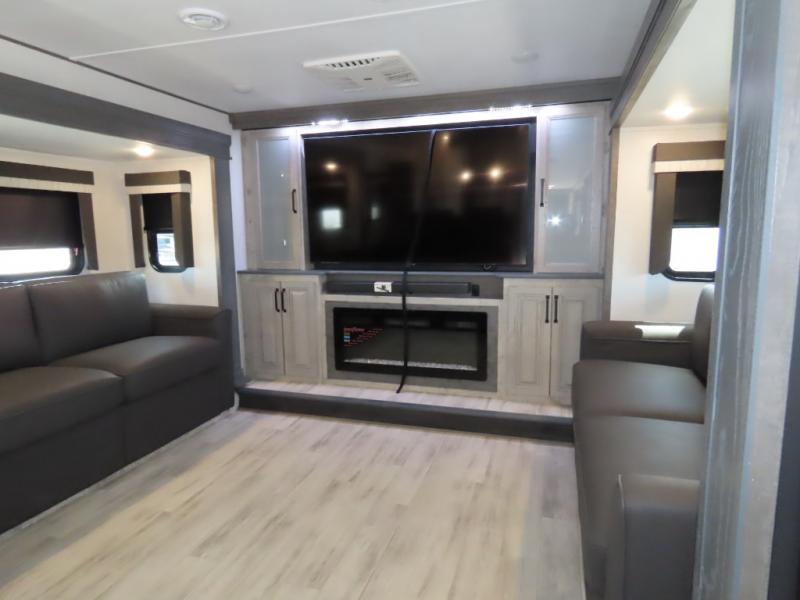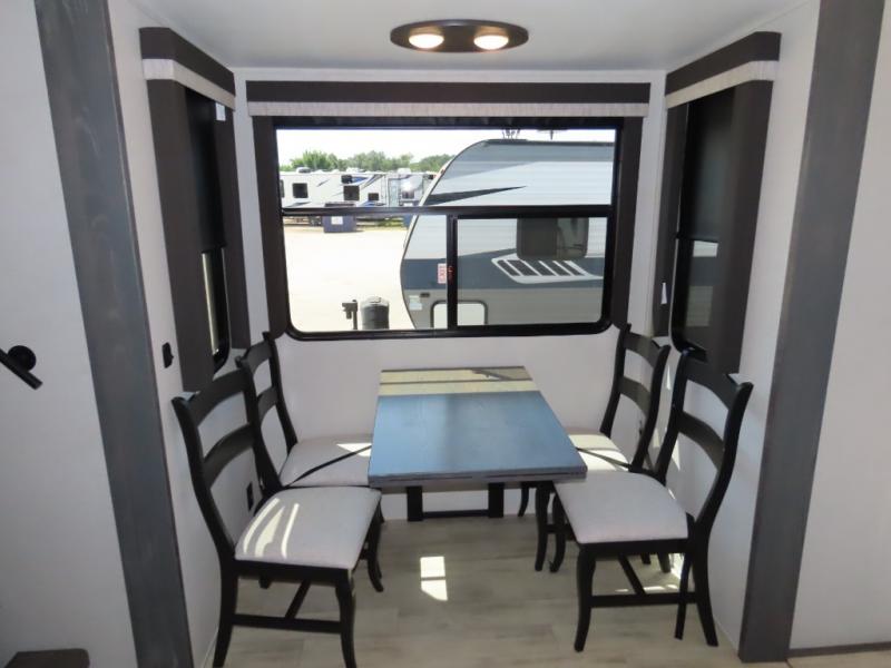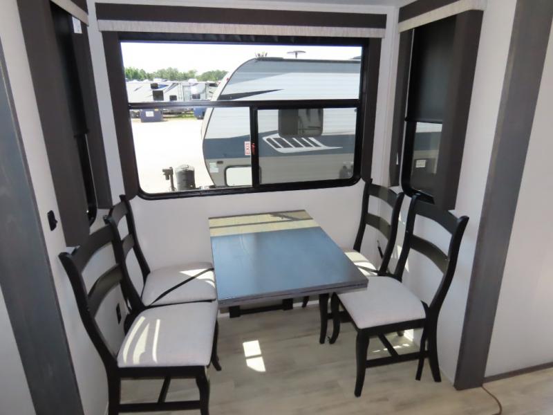 Enjoy traveling with your family and friends in this fifth wheel featuring quad slides providing space for everyone!