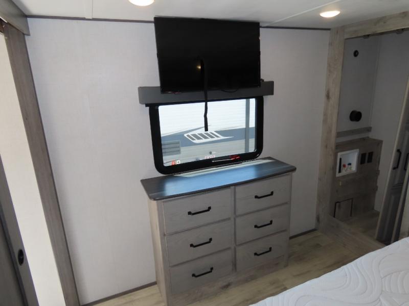 With any Keystone luxury full-profile Avalanche fifth wheel, you will experience wide-body construction that allows you to stretch out and stay awhile during any season thanks to the Polar Pack All Season Protection that includes a heated and enclosed underbelly, an Astro foil reflective layer on the roof, front and rear walls, and two static attic vents, plus more! The interior offers hardwood slide out fascia with wood accents, crown molding, plus your choice of modern interior design. There are many more Keystone exclusives, like the Tru-Fit slide construction, the in-floor heating ducts, KeyTV™, and much more to bring you a full-packed, luxury fifth wheel!