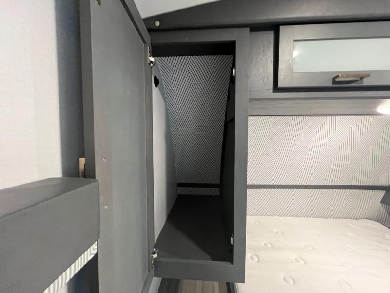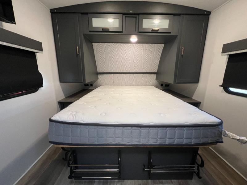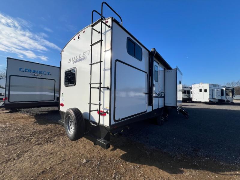 With any Keystone Bullet travel trailer you can experience ultra-lightweight camping with style! The interior design and functionality will impress you, and the stunning cabinetry, the vaulted ceilings, and the built-in laundry chute are just a few of the highlights. Each is built with Hyper Deck RV flooring that is stronger, lighter and more resilient than traditional wood laminated flooring, a pass-through storage compartment with a peg board and baggage doors with magnetic catches, and a docking station, an easily accessible convenience center with water connections, water heater bypass, KeyTV hookups, stabilizer jack switches and winterization access. You will also find a Giggy box, a weather protected, labeled, and fused electric box, plus more Keystone Exclusives. Start your glamorous and carefree trip today in a Bullet!