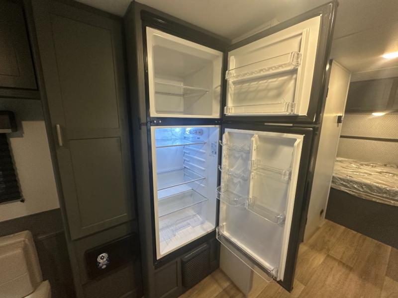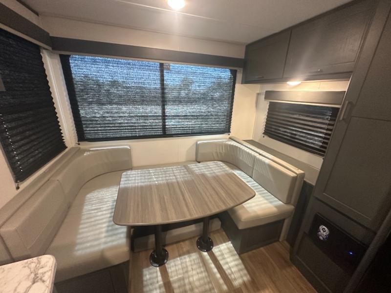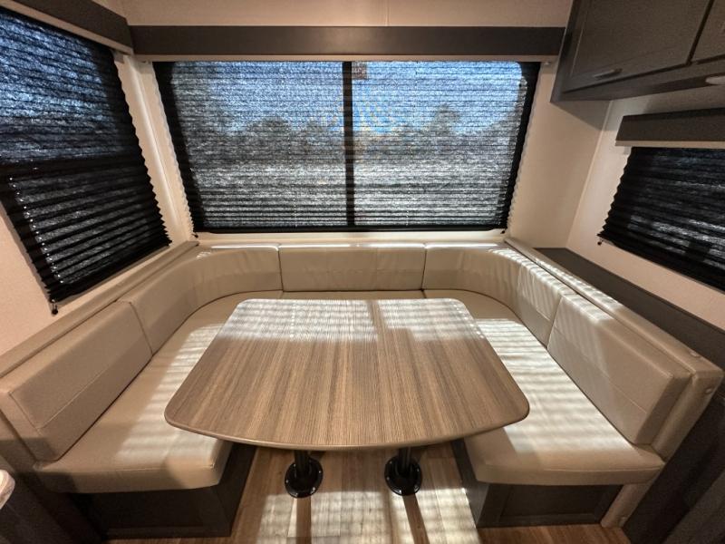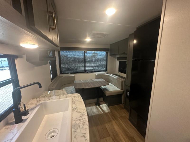 Simple and lightweight, this travel trailer is the unit you've been searching for! Once you arrive at your destination, unload the pass-through storage, then head inside to start lunch in the full kitchen. Here, you'll find a 17" oven and range to cook meals on and an 8 cu. ft. 12V refrigerator for perishables. The rear U-shaped dinette can serve as dining and sleeping space for your guests, while you take the front corner queen bed. Don't let this travel trailer slip away!