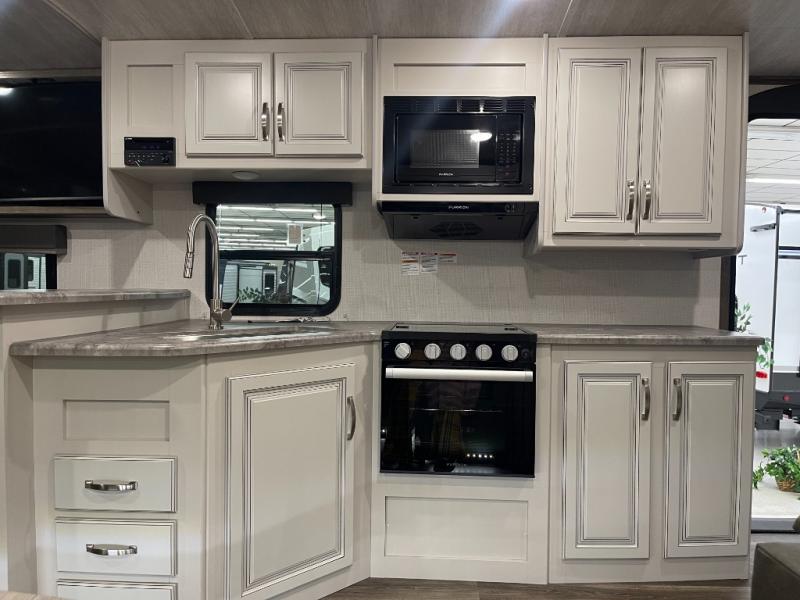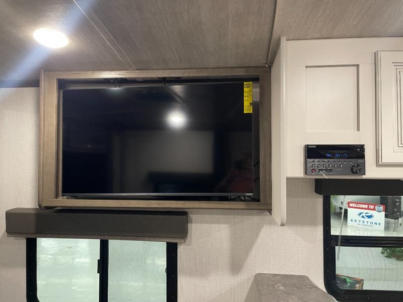 The Keystone Cougar Half-Ton fifth wheel and travel trailers are known as one of America's favorites for a reason! Some of those reasons are the exclusive features that come from Keystone, like the Winegard Air 360+ omni-directional rooftop antenna, the in-floor heating ducts, and the Hyper Deck flooring. The Cougar Half-Ton has a Climate Guard protection package to keep you safe during inclement weather, along with two roof attic vents, PEX plumbing and more. Use the 21" Furrion range with Piezo ignition to create all of those familiar meals from home, and enjoy endless hot showers with the Girard tankless on-demand water heater!