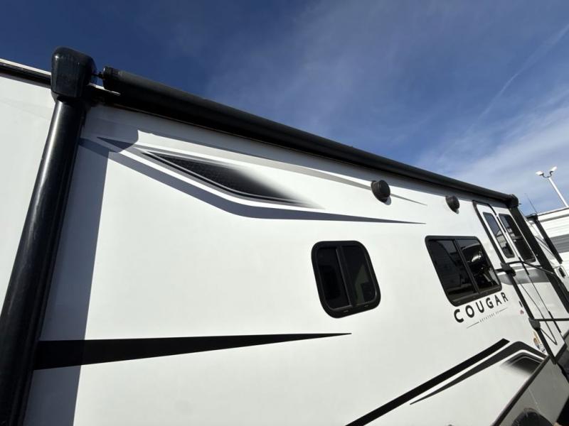 The Keystone Cougar Half-Ton fifth wheel and travel trailers are known as one of America's favorites for a reason! Some of those reasons are the exclusive features that come from Keystone, like the Winegard Air 360+ omni-directional rooftop antenna, the in-floor heating ducts, and the Hyper Deck flooring. The Cougar Half-Ton has a Climate Guard protection package to keep you safe during inclement weather, along with two roof attic vents, PEX plumbing and more. Use the 21" Furrion range with Piezo ignition to create all of those familiar meals from home, and enjoy endless hot showers with the Girard tankless on-demand water heater!
