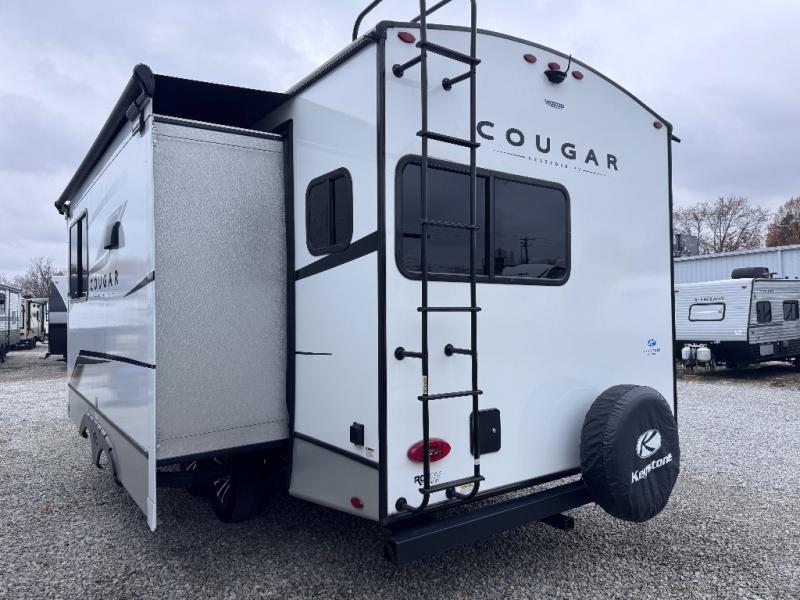 The Keystone Cougar Half-Ton fifth wheel and travel trailers are known as one of America's favorites for a reason! Some of those reasons are the exclusive features that come from Keystone, like the Winegard Air 360+ omni-directional rooftop antenna, the in-floor heating ducts, and the Hyper Deck flooring. The Cougar Half-Ton has a Climate Guard protection package to keep you safe during inclement weather, along with two roof attic vents, PEX plumbing and more. Use the 21" Furrion range with Piezo ignition to create all of those familiar meals from home, and enjoy endless hot showers with the Girard tankless on-demand water heater!